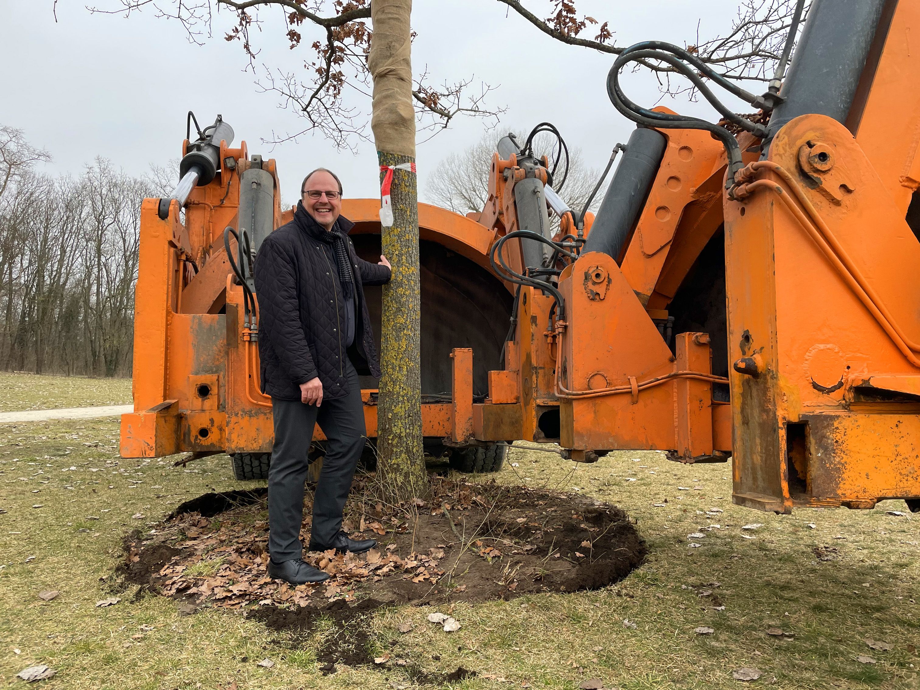 Bürgermeister und erster Sör-Werkleiter Christian Vogel erklärt: „Gerade in Zeiten des Klimawandels ist es wichtig, dass wir ressourcenschonend mit Bäumen umgehen. Deshalb nehmen wir immer häufiger die Möglichkeit wahr, ältere Bäume, die zum Beispiel einem Bauprojekt im Wege stehen, umzupflanzen und nicht abzusägen. So bleiben zum einen wertvolle alte Bäume erhalten, zum anderen bekommen wir gegenüber einer standardmäßigen Baumpflanzung rund 20 Entwicklungsjahre geschenkt. Normalerweise müssen sich die deutlich kleineren Jungbäume erst an ihre neue Umgebung gewöhnen. Diese Zeit entfällt bei einer Großbaumverpflanzung. Dazu kommt der optische Effekt: Dadurch, dass wir Bäume von beträchtlicher Größe anpflanzen, sind die neuen Standorte rasch üppig bewachsen.“