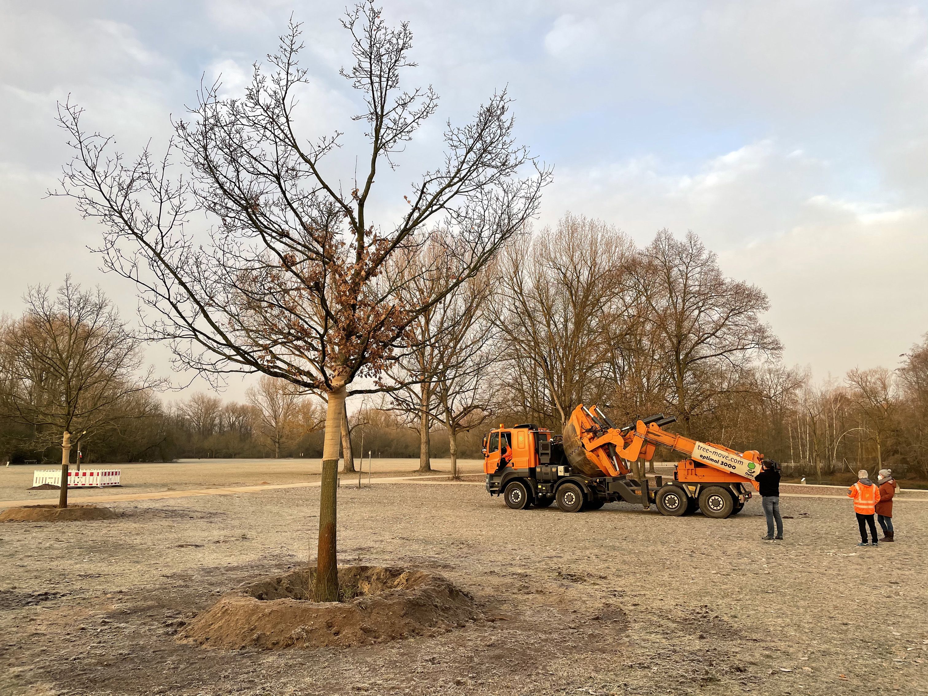 Aufgrund der Anwachserfolge in den letzten Jahren macht Sör immer häufiger Gebrauch von der Möglichkeit, Großbäume zu verpflanzen. Bürgermeister Vogel: „Wir nutzen die Möglichkeit der Großbaumverpflanzung, wo immer es geht. 18 auf einen Streich haben wir bisher allerdings noch nicht gehabt. Deshalb freue ich mich umso mehr, dass wir im Marienbergpark geeignete Standorte gefunden haben.“