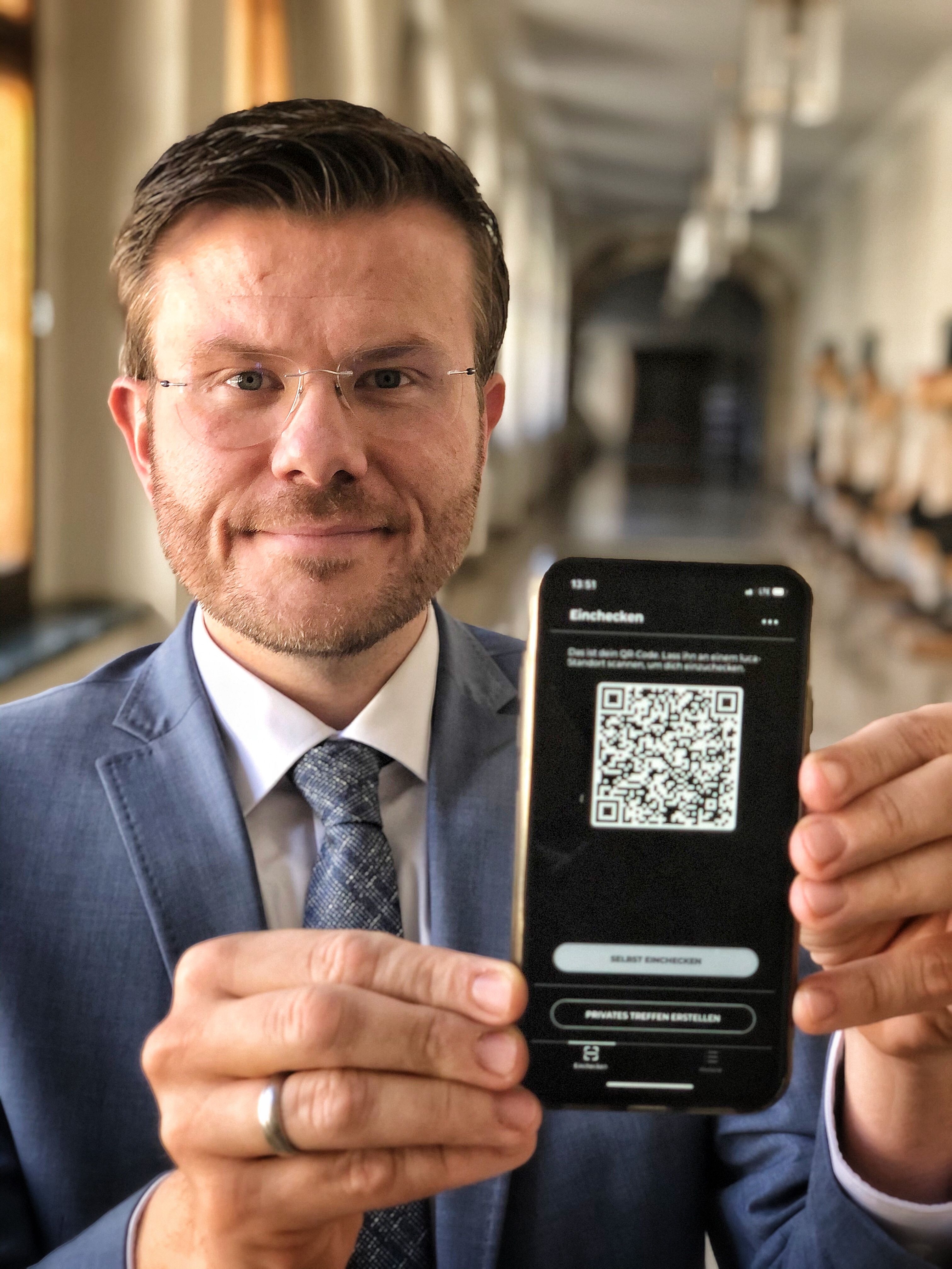 Bild Download: Nürnbergs Oberbürgermeister Marcus König hat sie schon auf seinem Handy: die Luca-App. Die Stadt Nürnberg setzt künftig auf die App.