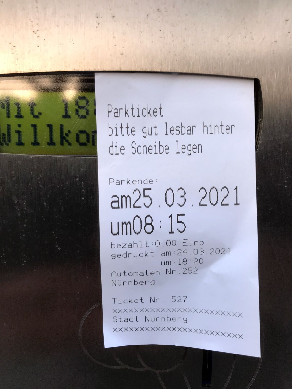 Bild Download: Freiparken-Ticket mit 15-minütiger Gültigkeitsdauer
