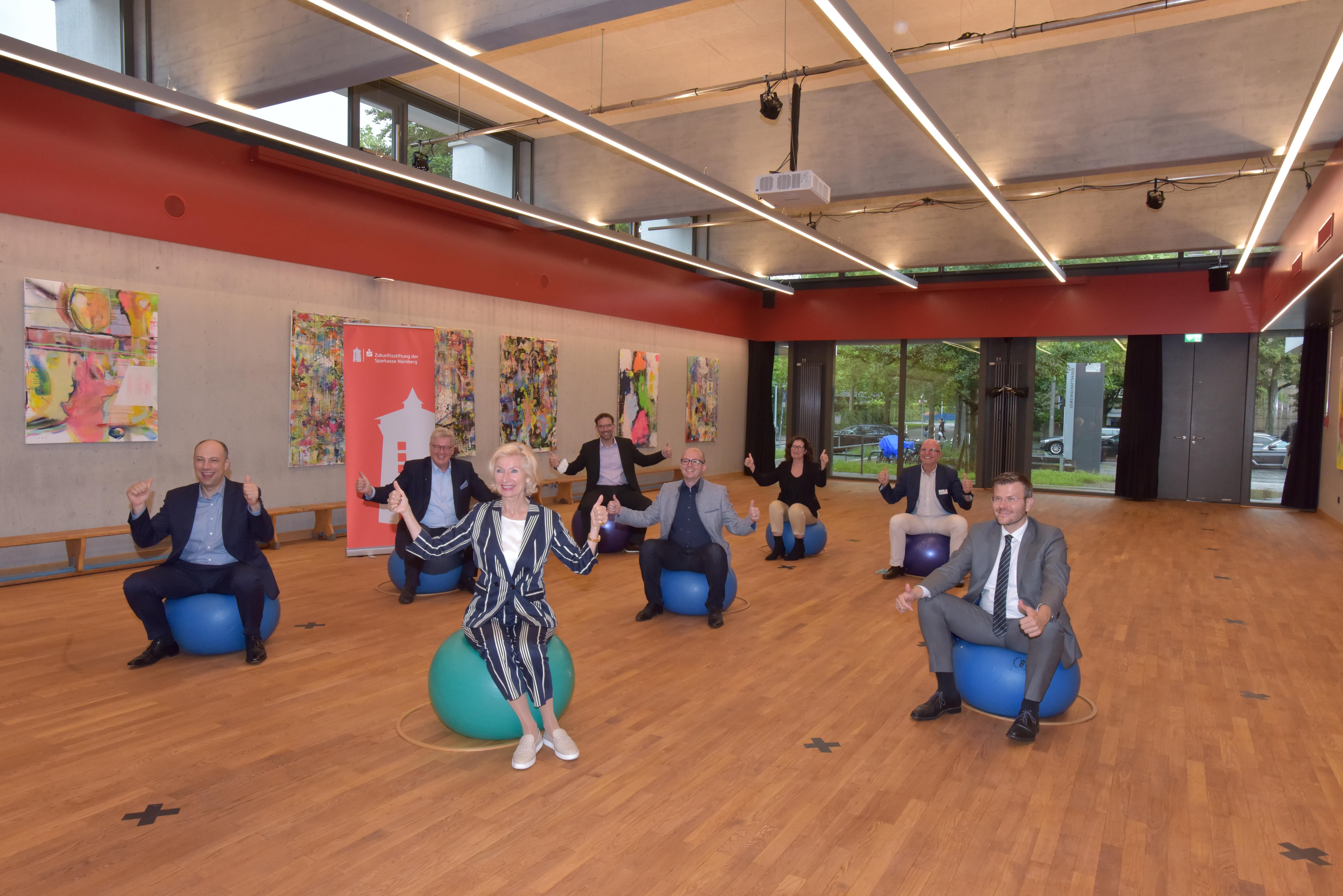 Das städtische Hochbauamt hat die Generalsanierung des Gemeinschaftshauses Langwasser, des ältesten Kulturladens in Nürnberg, abgeschlossen. Kulturladen, Stadtbibliothek und Gastronomie konnten die neuen Räumlichkeiten wieder beziehen, das Gemeinschaftshaus startet jetzt mit einem neuen Programm. Die offizielle Einweihungsfeier fand am heutigen Freitag, 9. Juli 2021, mit Oberbürgermeister Marcus König, Bürgermeisterin Prof. Dr. Julia Lehner, Planungs- und Baureferent Daniel F. Ulrich, Dr. Matthias Everding, Vorstandsvorsitzender der Zukunftsstiftung der Sparkasse Nürnberg, und dem Leiter des Gemeinschaftshauses Langwasser, Walter Müller-Kalthöner, im Beisein einer coronabedingt reduzierten Gästezahl statt.