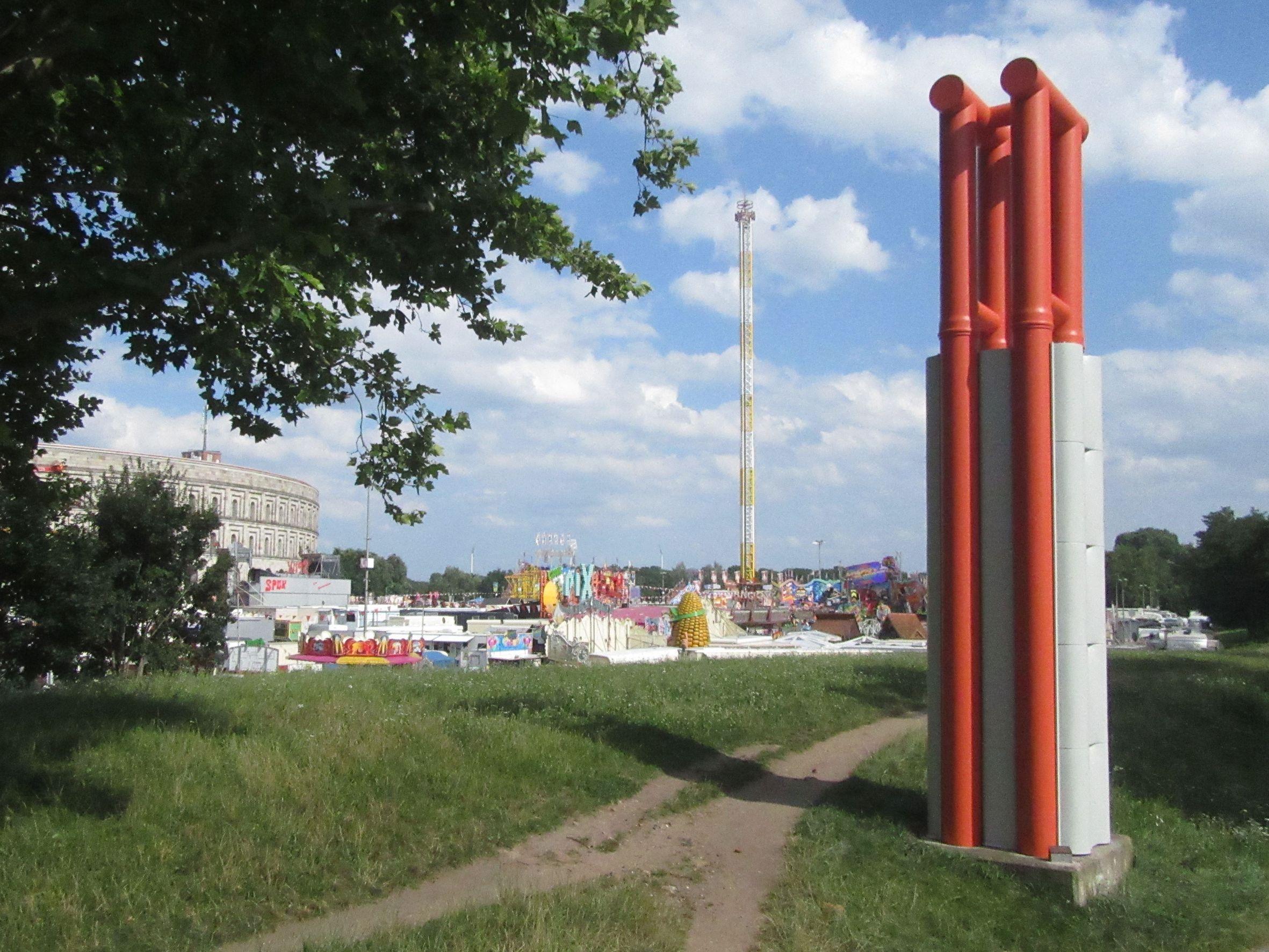 Kunst im öffentlichen Raum: Das Kunstwerk "Hydrierturm II" von Jochen Bandau, ein Kunstwerk des Kunstprojekts "Symposion Urbanum", wurde saniert und steht am Volksfestplatz.