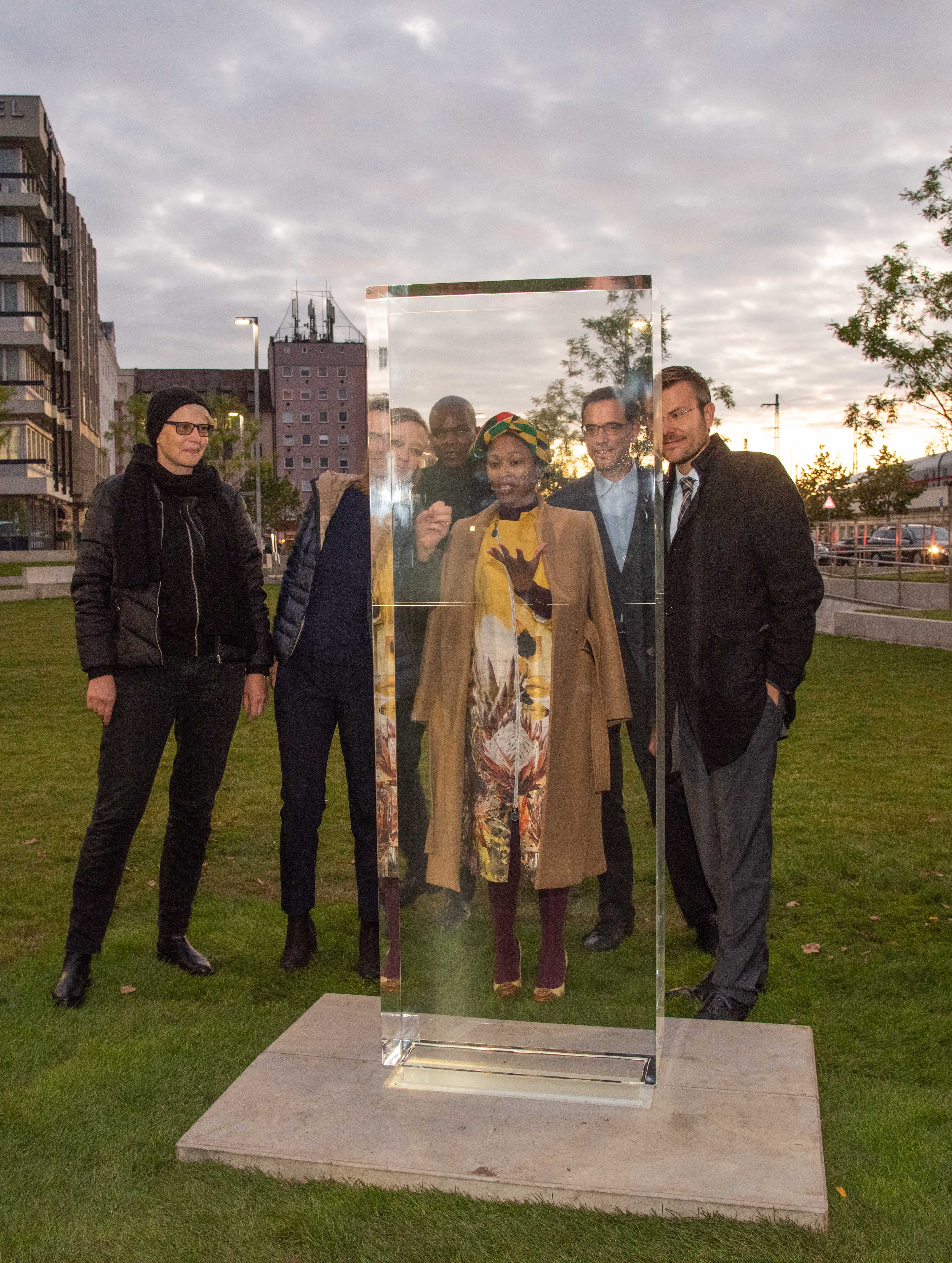 v.l.n.r.: Das Künstlerinnenduo missing icons, Andrea Knobloch und Ute Vorkoeper, der südafrikanische Konsul Sifiso Mangali, die südafrikanische Generalkonsulin Roleta Julieta Susana Lebelo, Planungs- und Baureferent Daniel F. Ulrich, Oberbürgermeister Marcus König.
