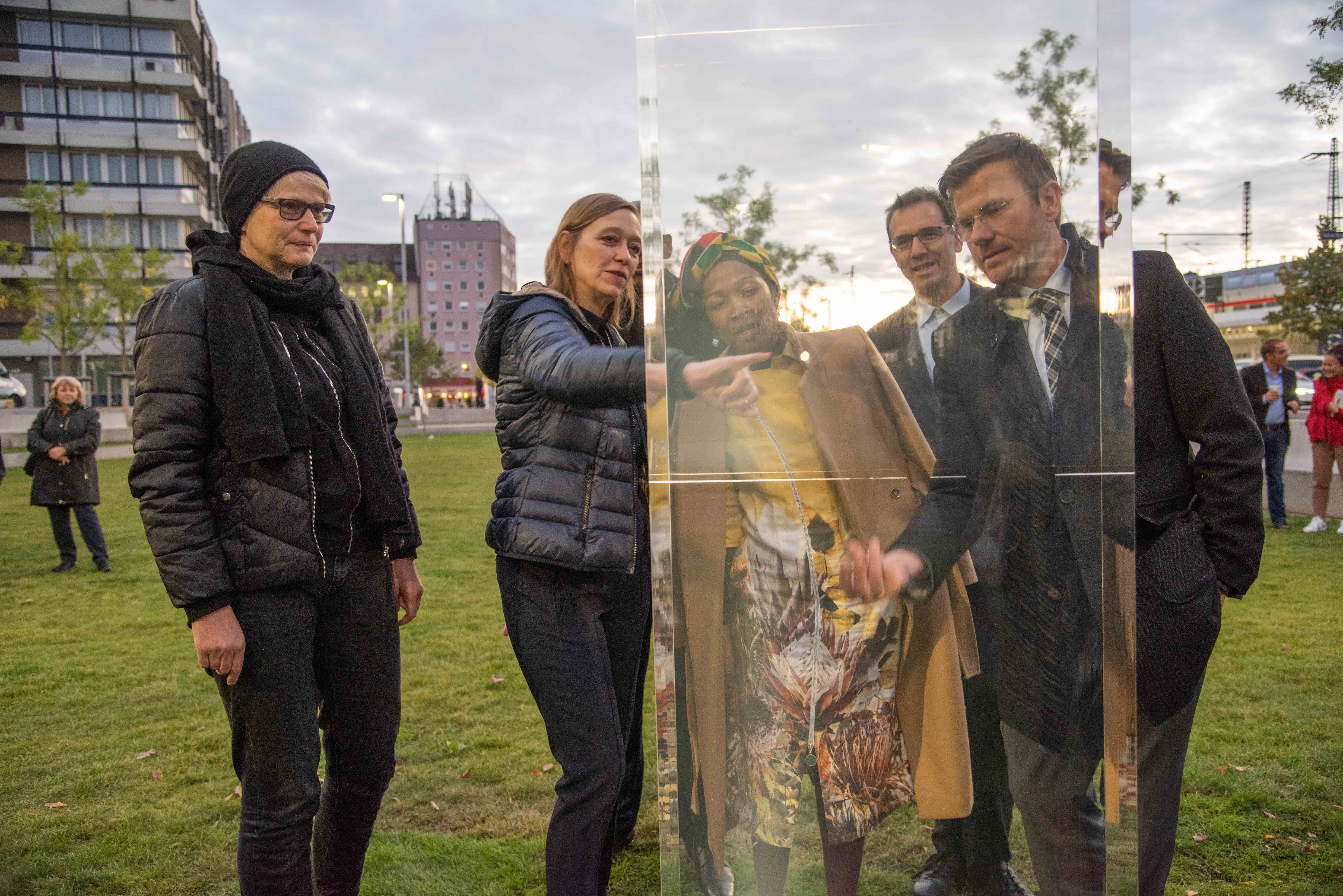 Enthüllung des Kunstwerks „Rolihlahla“ auf dem Nelson-Mandela-Platz am Donnerstag, 7. Oktober 2021: