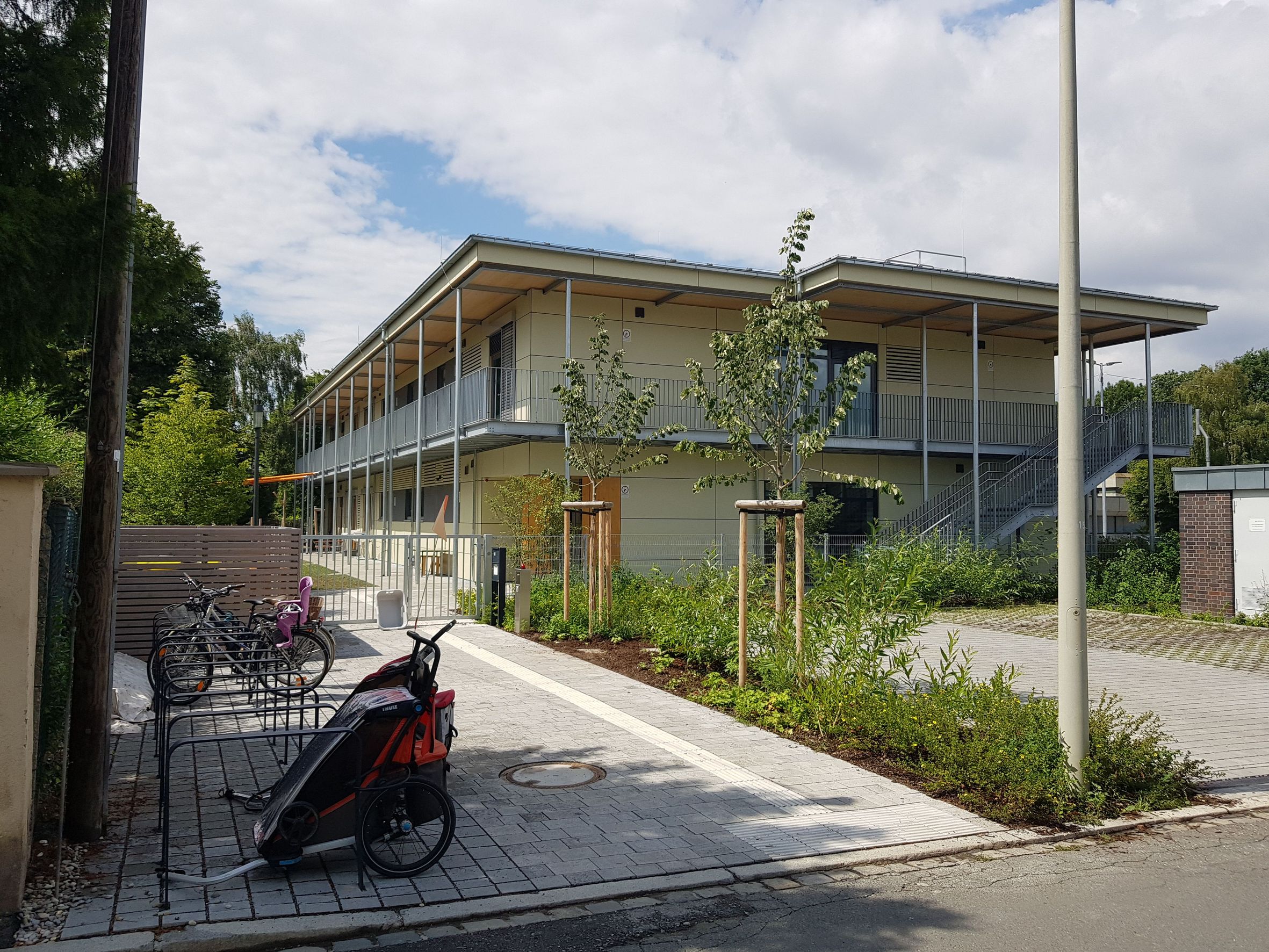 In Nürnberg haben zwei neue Regionalkindergärten den Betrieb aufgenommen. Auf dem Bild ist der Regionalkindergarten in der Großreuther Straße zu sehen. Der zweite, baugleiche Kindergarten befindet sich in der Zugspitzstraße.