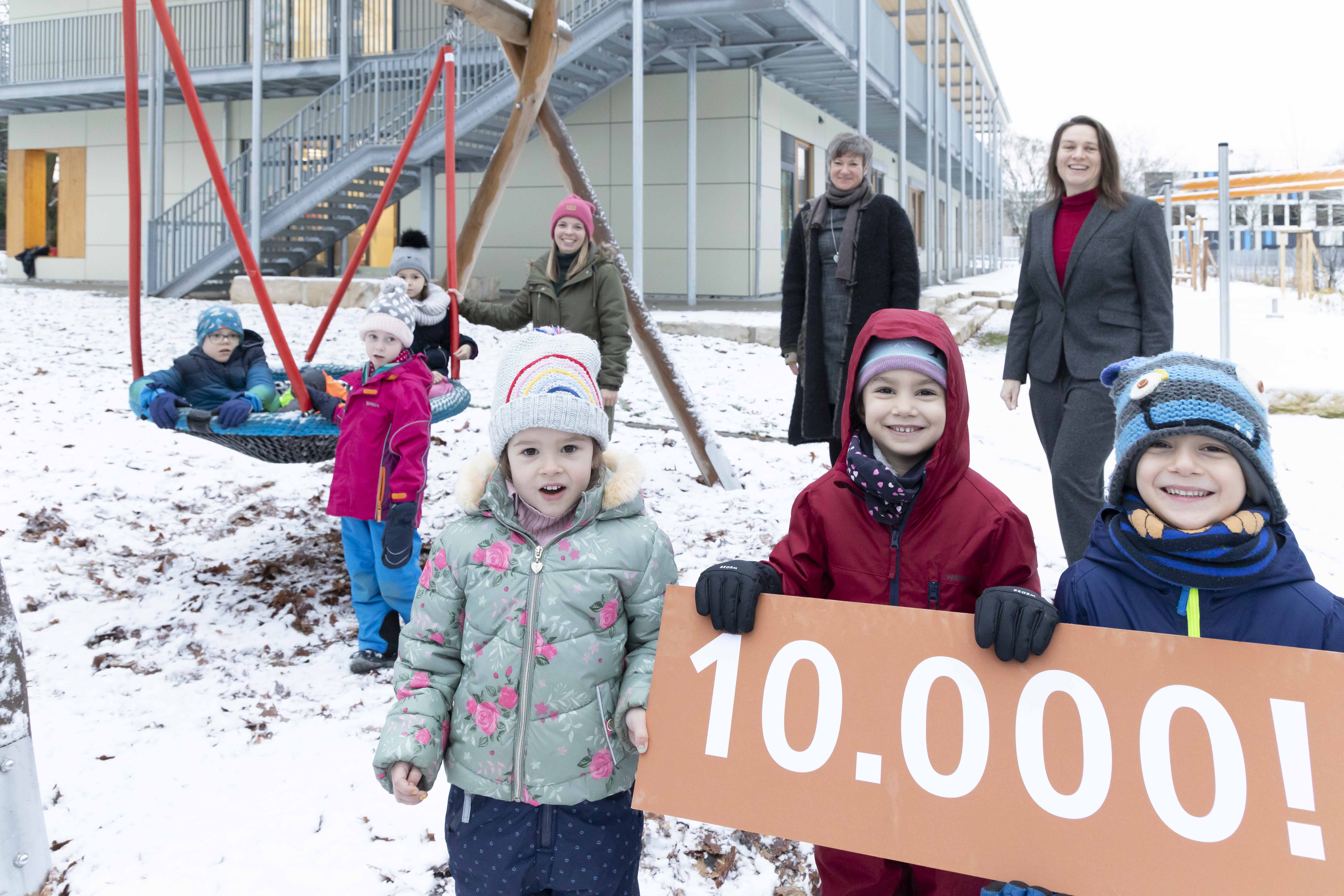 Das Jugendamt Nürnberg freut sich über den 10 000sten Kita-Platz in städtischer Trägerschaft. Mit der Inbetriebnahme von vier städtischen Kindertageseinrichtungen in den Stadtteilen Langwasser, Sündersbühl, Ziegelstein und Katzwang kamen 2021 zusätzliche 375 Plätze hinzu. Für Familien und Kinder in den neu versorgten Stadtteilen bedeutet dies eine weitere Verbesserung des wohnortnahen Kita-Angebots. Mit dem Regionalkindergarten Zugspitzstraße können auch angrenzende Stadtteile mitversorgt werden.