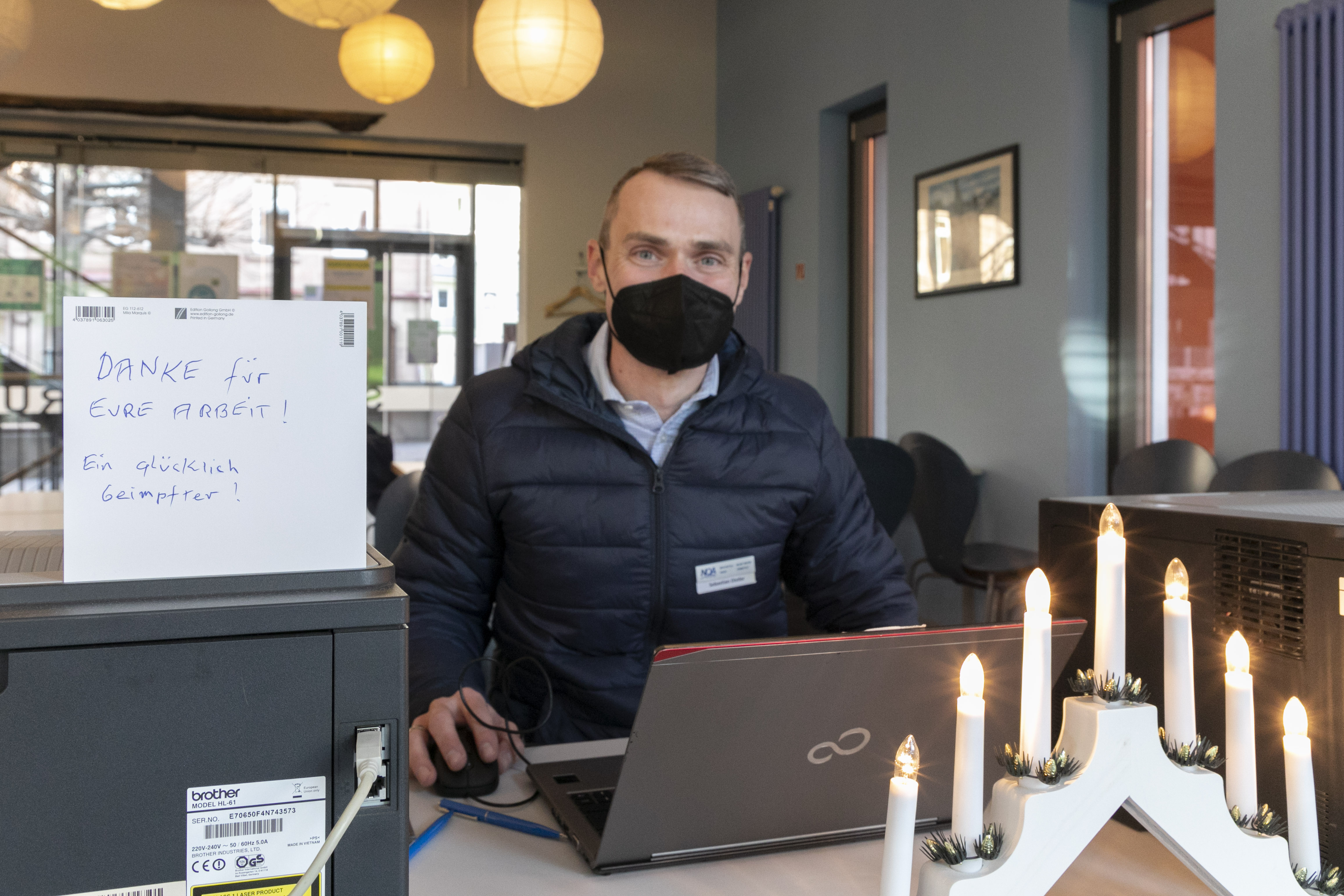 "Danke für eure Arbeit! Ein glücklich Geimpfter!" - eine Notiz, die den stellvertretenden Geschäftsführer der Noris-Arbeit, Sebastian Distler, sehr freut.