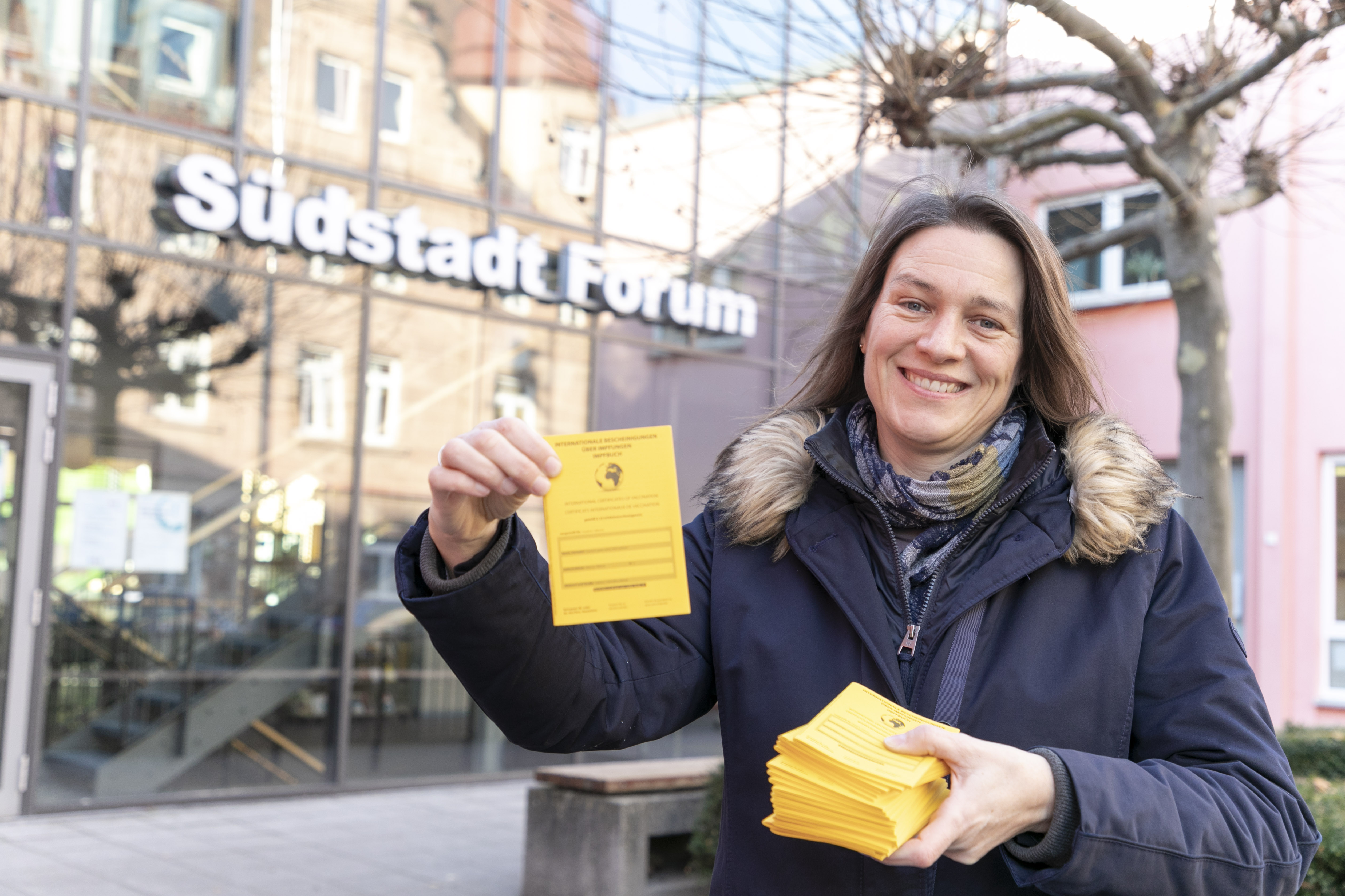 Bei der Aktion im Südstadtforum konnte man sich einen Impfausweis ausstellen lassen. Im Bild Elisabeth Ries, Referentin für Jugend, Familie und Soziales der Stadt Nürnberg, die die Gelegenheit nutzte und sich selbst ihre Auffrischungsimpfung holte.