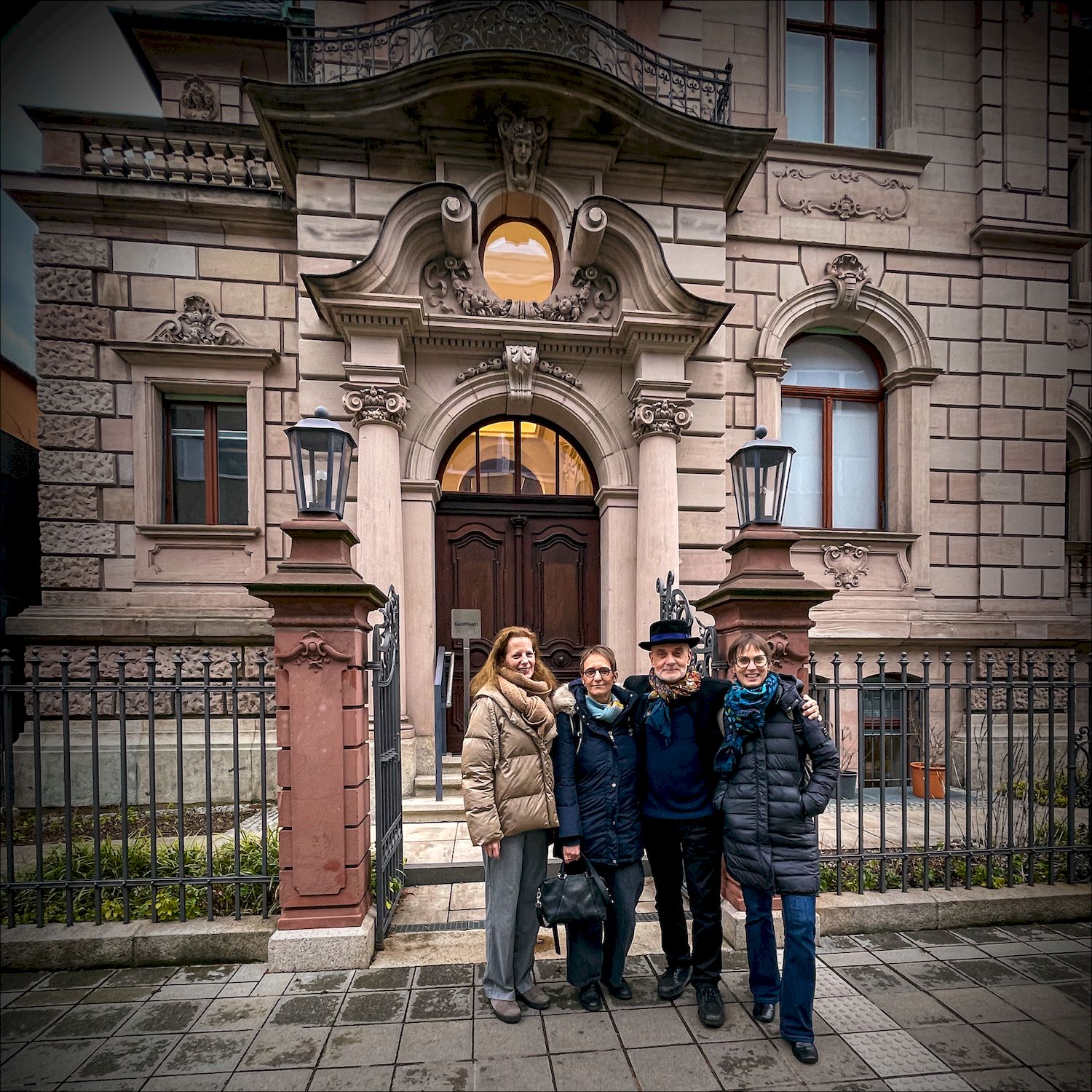 Der Besuch beinhaltete eine Führung durch die Marienvorstadt auf den Spuren der Familie Hopf, die in Nürnbergs erster Stadterweiterung im 19. Jahrhundert drei repräsentative Villen sowie Geschäftshäuser besaß. Die Nachfahren zeigten sich begeistert von der Kunstvilla und ihrer Geschichte, aber auch von der dort präsentierten Kunst des 20. und 21. Jahrhunderts, und wollen bald wiederkommen. qui