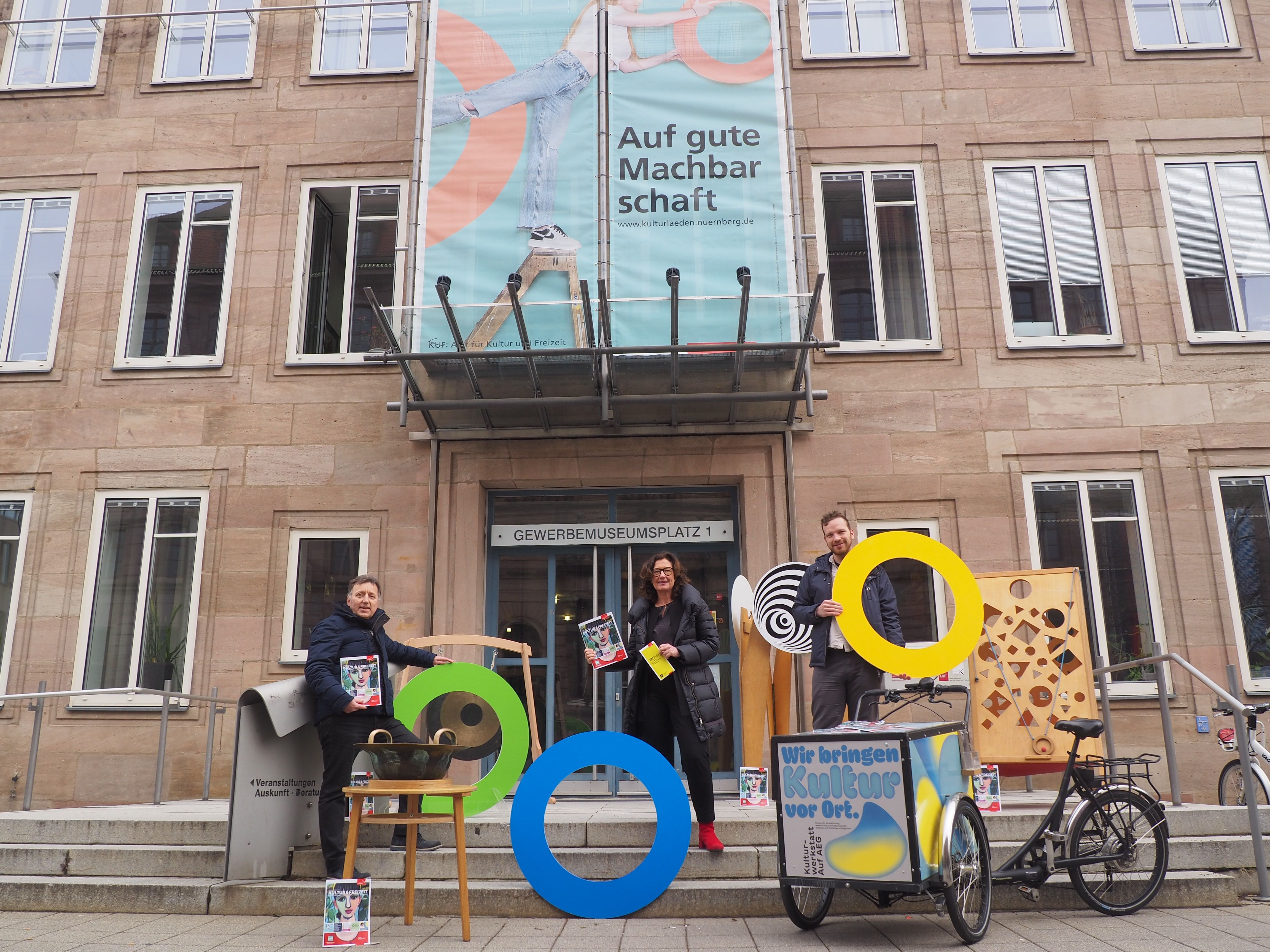 Das Amt für Kultur und Freizeit stellt die neue „Kultur&Freizeit“ vor. Von links nach rechts: Claus Haupt, Abteilungsleiter kulturelle und politische Bildung, Annekatrin Fries, Leitung des Amts für Kultur und Freizeit, und Stefan Prochnow, stellvertretender Abteilungsleiter soziokulturelle Stadtteilarbeit, Die Nürnberger Kulturläden°. Bildnachweis: Stadt Nürnberg