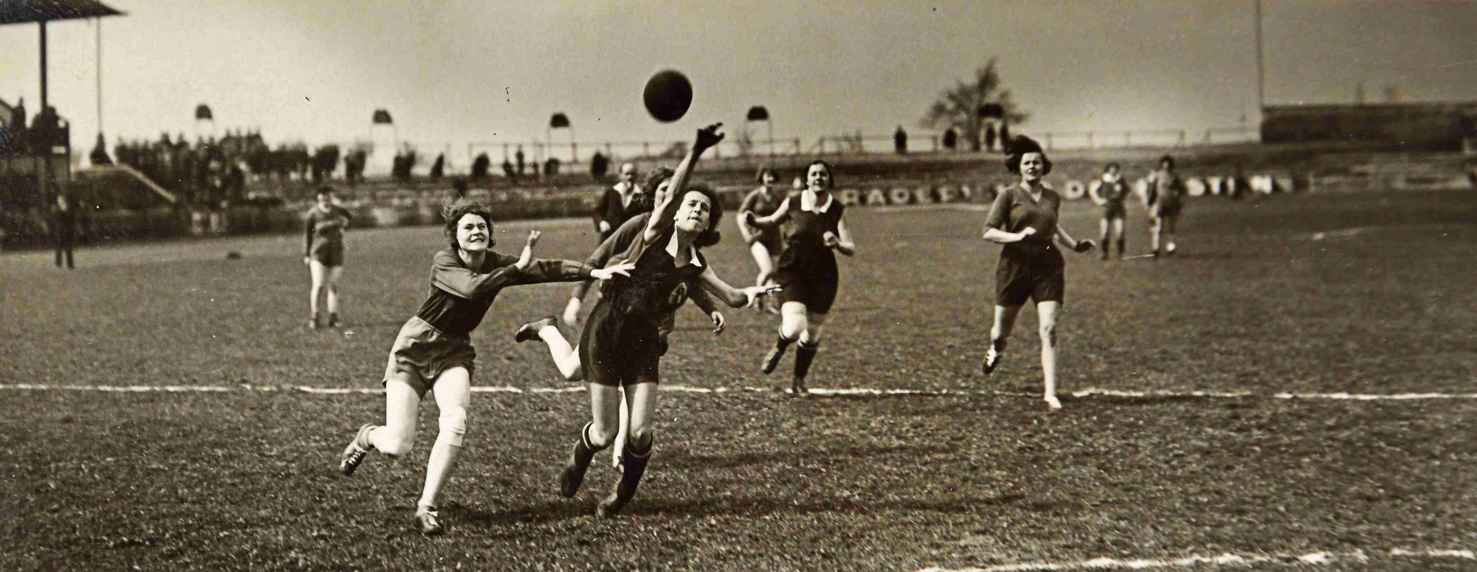 Die Handballfrauen des 1. FCN bei einem Spiel im Jahr 1930.