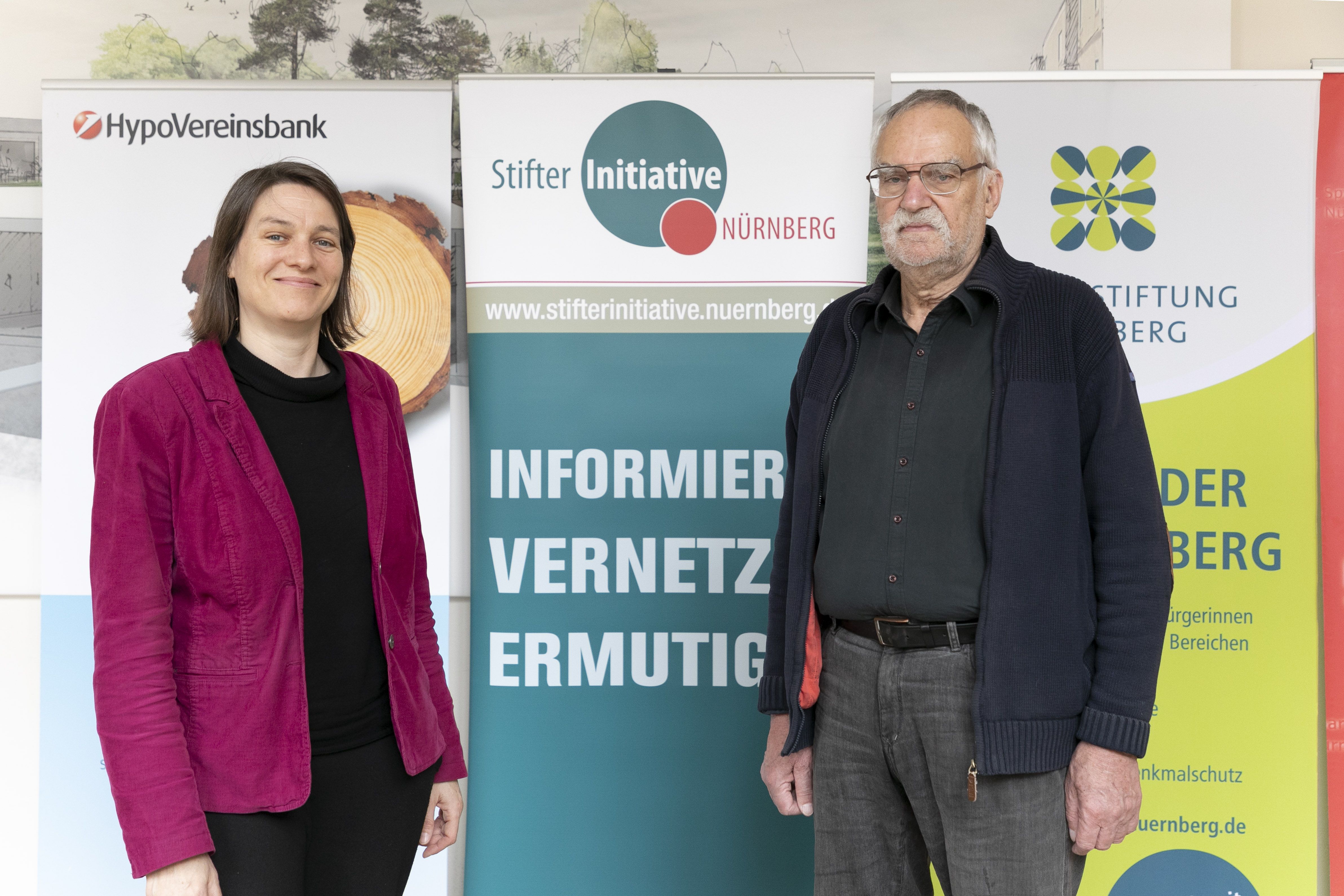 Bild Download: Elisabeth Ries, Referentin für Jugend, Familie und Soziales der Stadt Nürnberg, und Gebhard Schönfelder, Träger des Nürnberger Stifterpreises 2022.