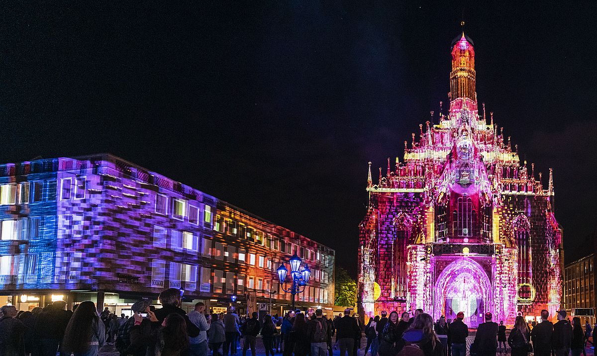 In der Publikumsgunst weit oben lagen – wie in der Vergangenheit – die Angebote auf dem Hauptmarkt und an der Kaiserburg. Den Hauptmarkt bespielte die Berliner Gruppe re:sorb um Stefan Ihmig. Sie setzte mit der Einbindung von drei Fassaden, inklusive der Frauenkirche, auch formal neue Maßstäbe. Allein diese 3D-Mapping-Installation dürften mindestens 100 000 Menschen erlebt haben. Die Burg-Projektion der Fürther Künstlerin Sascha Banck spielte mit Witz, Fabelwesen und Farblust mit dem Gesamtmotto der Nacht, „Phantasie“.