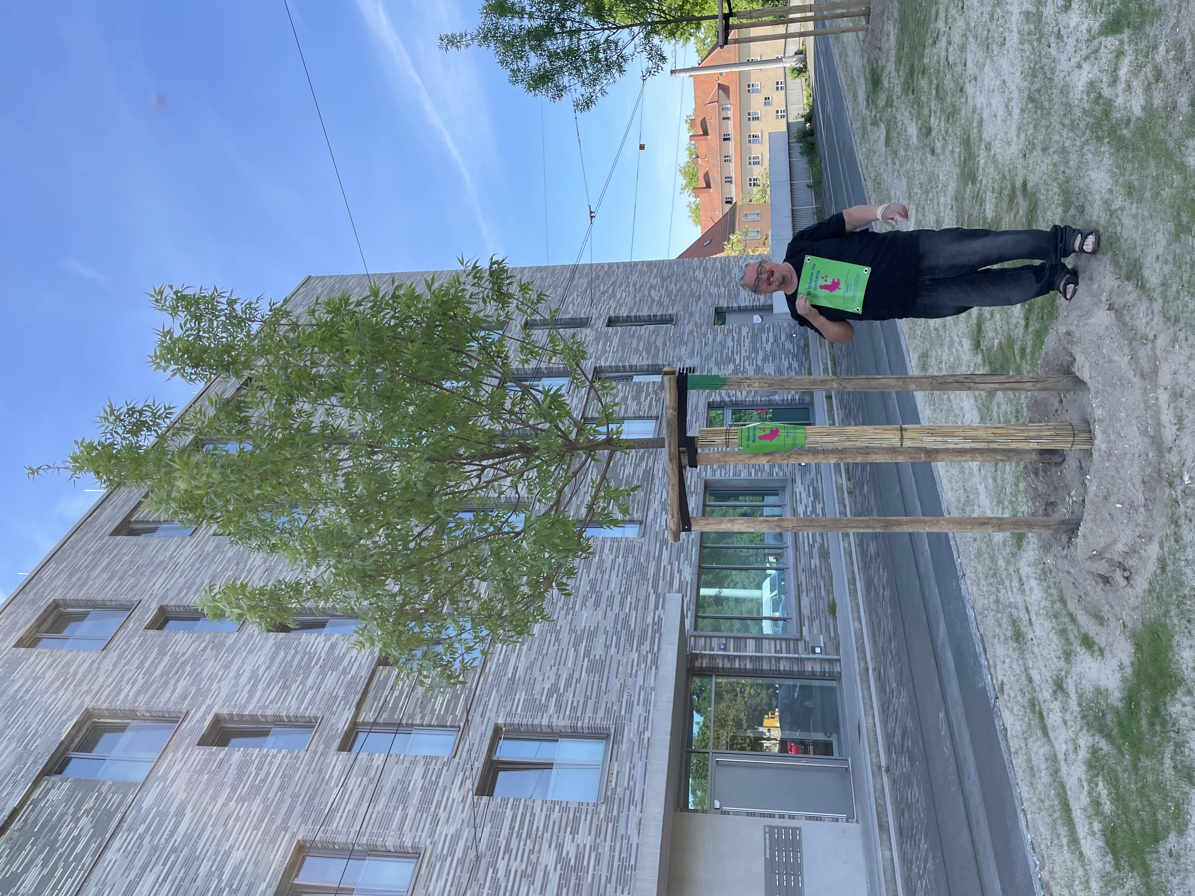 Der Servicebetrieb Öffentlicher Raum Nürnberg (Sör) hat sich zum Ziel gesetzt, jedes Jahr 500 Bäume auf öffentlichen Flächen zu pflanzen und so dem Klimawandel entgegenzuwirken. Zwei dieser Bäume hat jetzt der Künstler Karsten Neumann gespendet. Am Donnerstag, 19. Mai 2022, wurden die eigens hierfür von ihm gestalteten Spendenbanderolen angebracht.