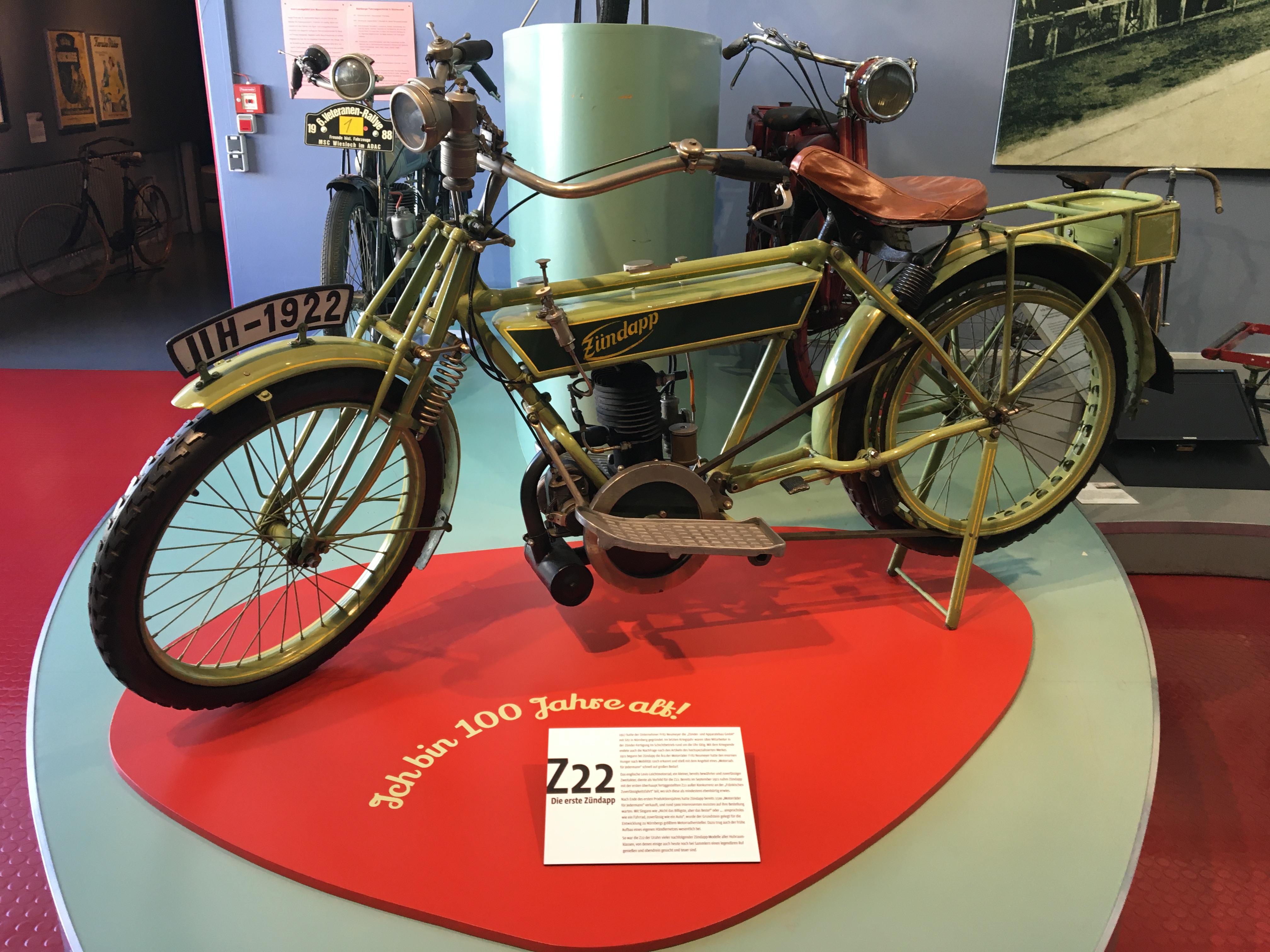 Die fesche hundertjährige Jubilarin Z22 wartet im Motorradmuseum auf ihre Bewunderer.