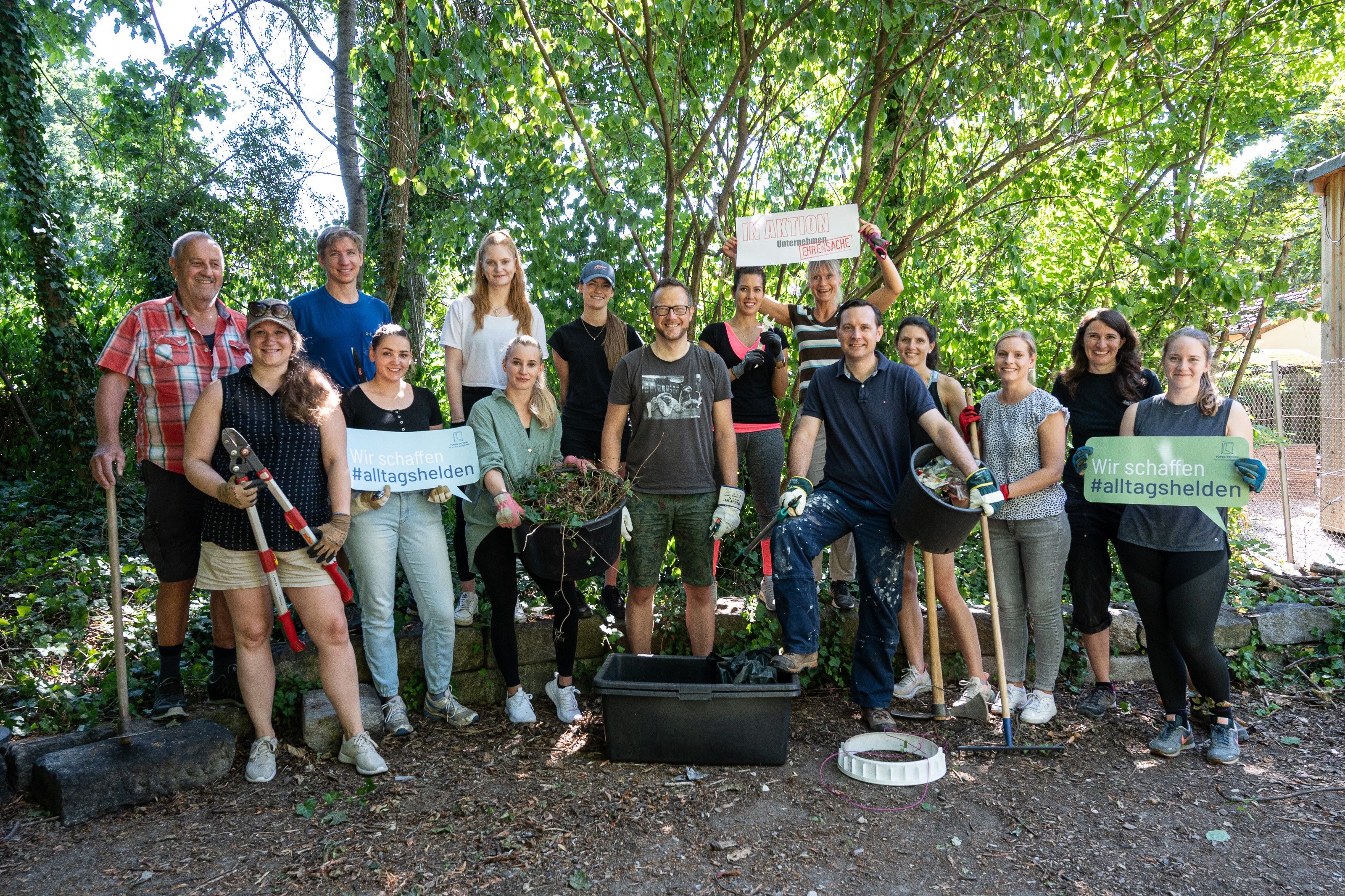 Beim 11. Nürnberger Corporate-Volunteering-Tag IN AKTION am Dienstag, 5. Juli 2022, konnten sich Einrichtungen im Nürnberger Süden in den Stadtteilen Galgenhof und Steinbühl über tatkräftige Unterstützung freuen. Rund 250 Beschäftigte aus 17 Unternehmen schaufelten, gruben, bauten und nutzten die Zeit, sich mit den Einrichtungen auszutauschen.