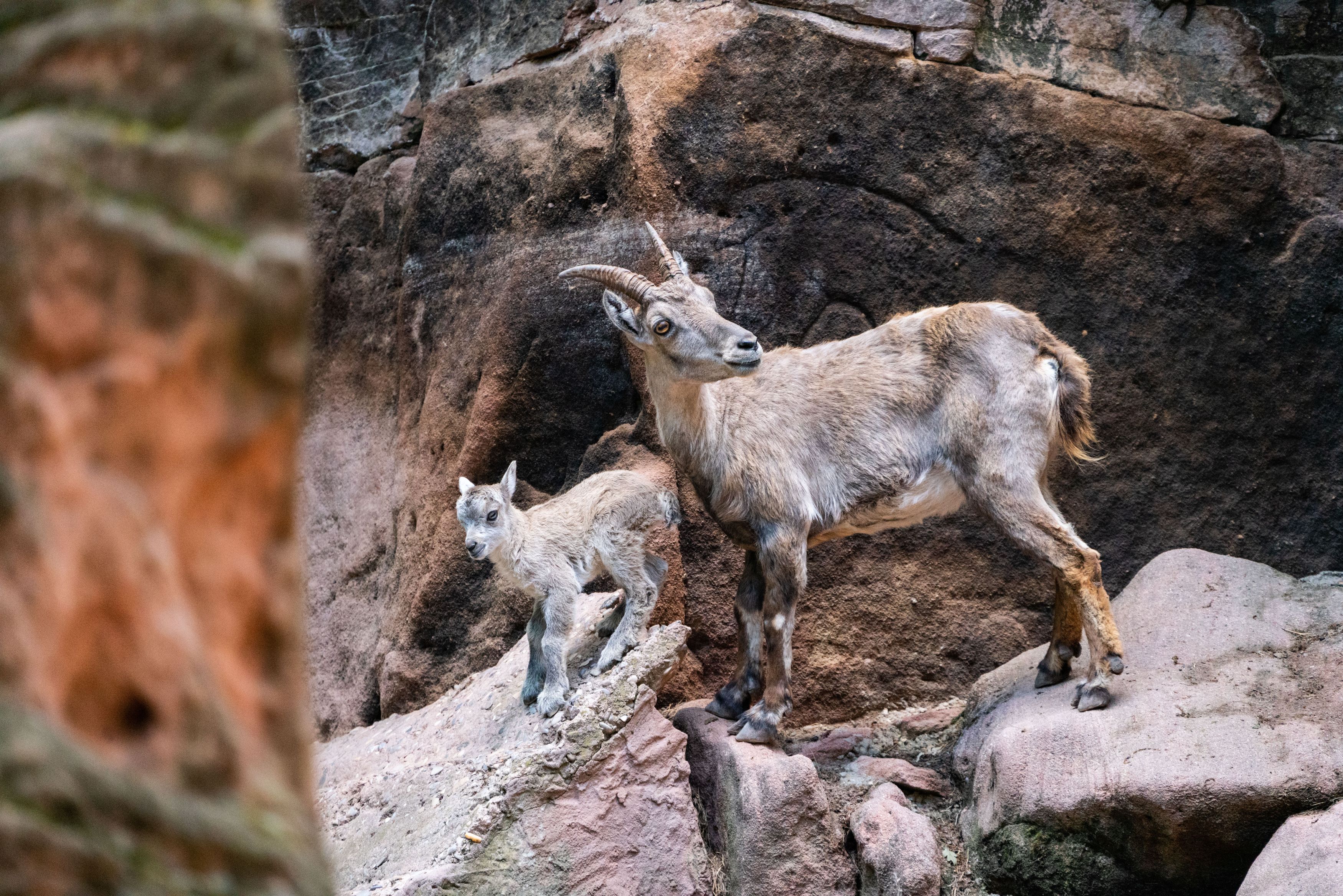 Der Tiergarten hält aktuell 17 Alpensteinböcke. Ihre Anlage, die sich an einem Sandsteinfelsen unterhalb der Raubtierwiese befindet, wurde im Frühjahr umgebaut. Ein Team des Tiergartens wertete die Anlage optisch auf und machte sie zudem für die Mitarbeiterinnen und Mitarbeiter besser begehbar sowie leichter zu pflegen. Die Tiere blieben während des Umbaus auf der Anlage. maj