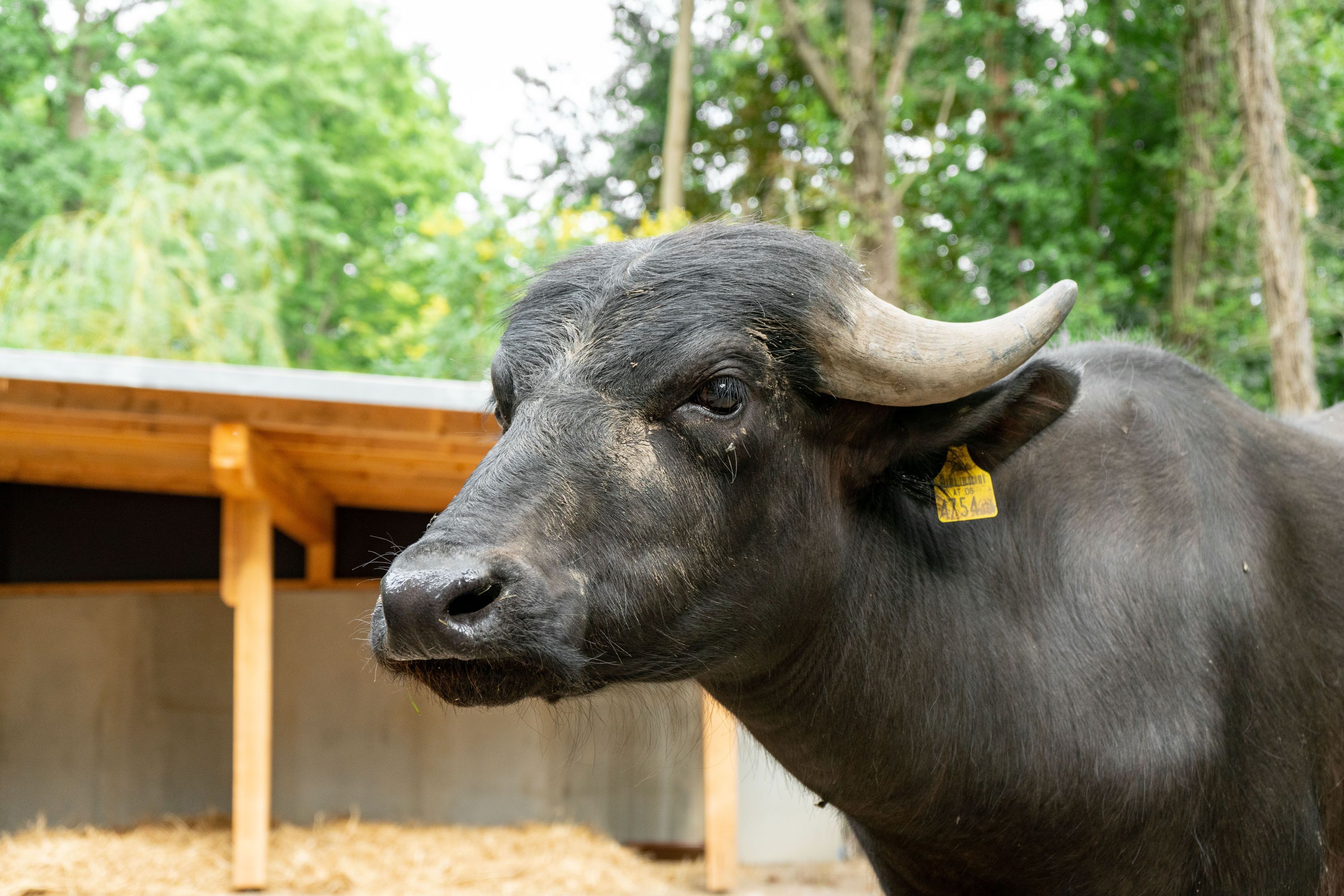 Bei den Hauswasserbüffeln handelt es sich um die domestizierte Form des wilden Wasserbüffels. Er ist in Asien beheimatet und hat dort eine große wirtschaftliche Bedeutung. Auch in Europa halten Landwirte immer häufiger Wasserbüffel – in Italien wird seine Milch beispielsweise zur Mozzarella verarbeitet. Vielerorts sind Wasserbüffel auch als Landschaftspfleger im Einsatz. Sie eigenen sich gut zur extensiven Beweidung und halten ökologisch wertvolle Flächen offen – so auch im Nationalpark Neusiedler See, aus dem einer der beiden Bullen stammt.
