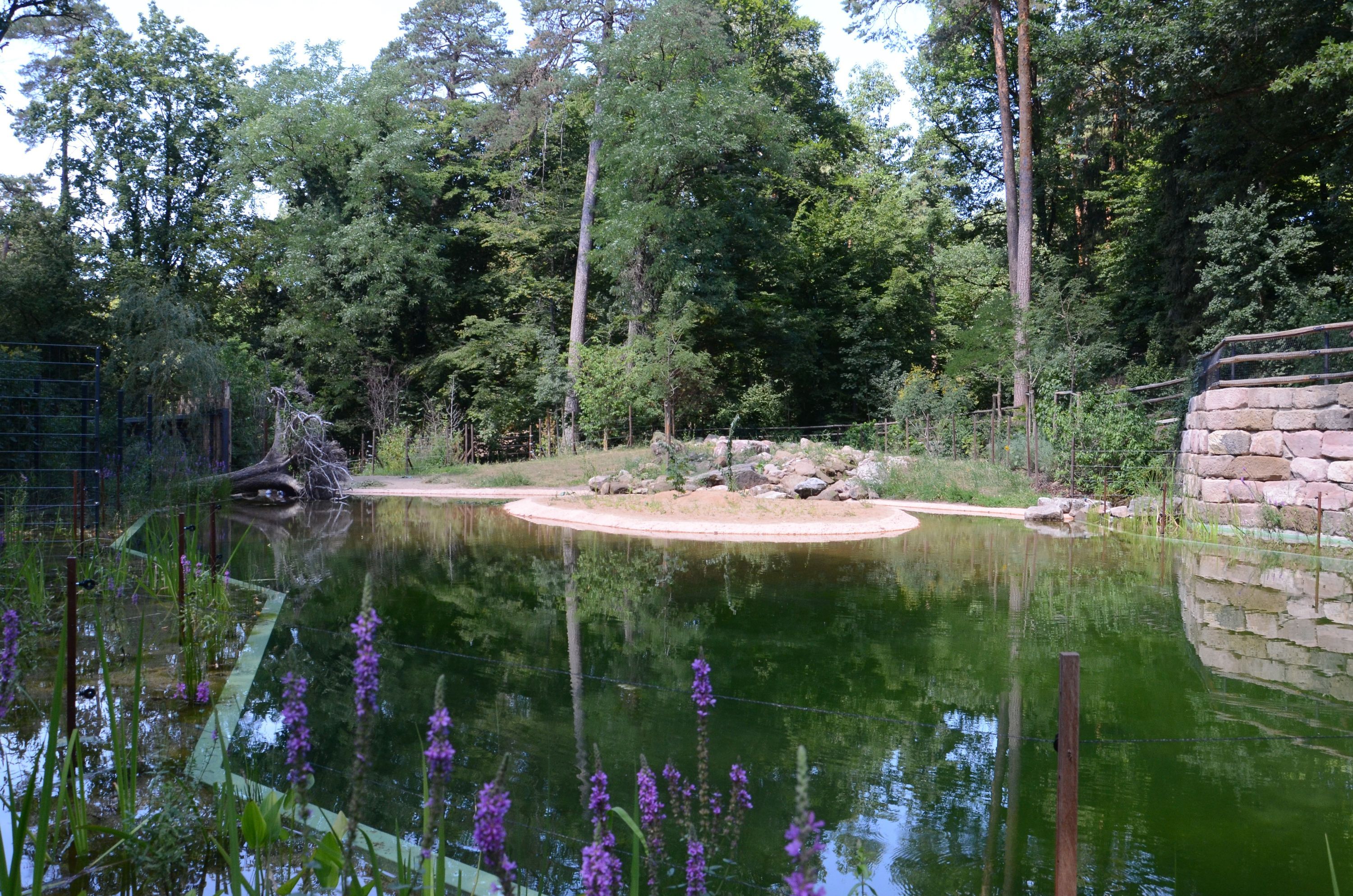 Die neue, mehr als 1 000 Quadratmeter große Anlage der Wasserbüffel besteht unter anderem aus einem großen Wasserbecken, einem Bachlauf, einer Mauer aus recyceltem Sandstein und asiatischen Baumund Straucharten. Am Ufer der etwa 350 Quadratmeter großen Wasserfläche und entlang des Bachlaufs wurden unter anderem Schilf und Rohrkolben gepflanzt. Die Pflanzen funktionieren in Kombination mit dem Substrat als natürlicher Filter: Sie nehmen die Nährstoffe auf, die die Tiere einbringen, und reinigen so das Wasser. Über eine Pumpe wird das Wasser wieder nach oben befördert und fließt dann über den Bachlauf zurück ins Becken. So kommt die Anlage ohne Wasseraufbereitungstechnik aus.