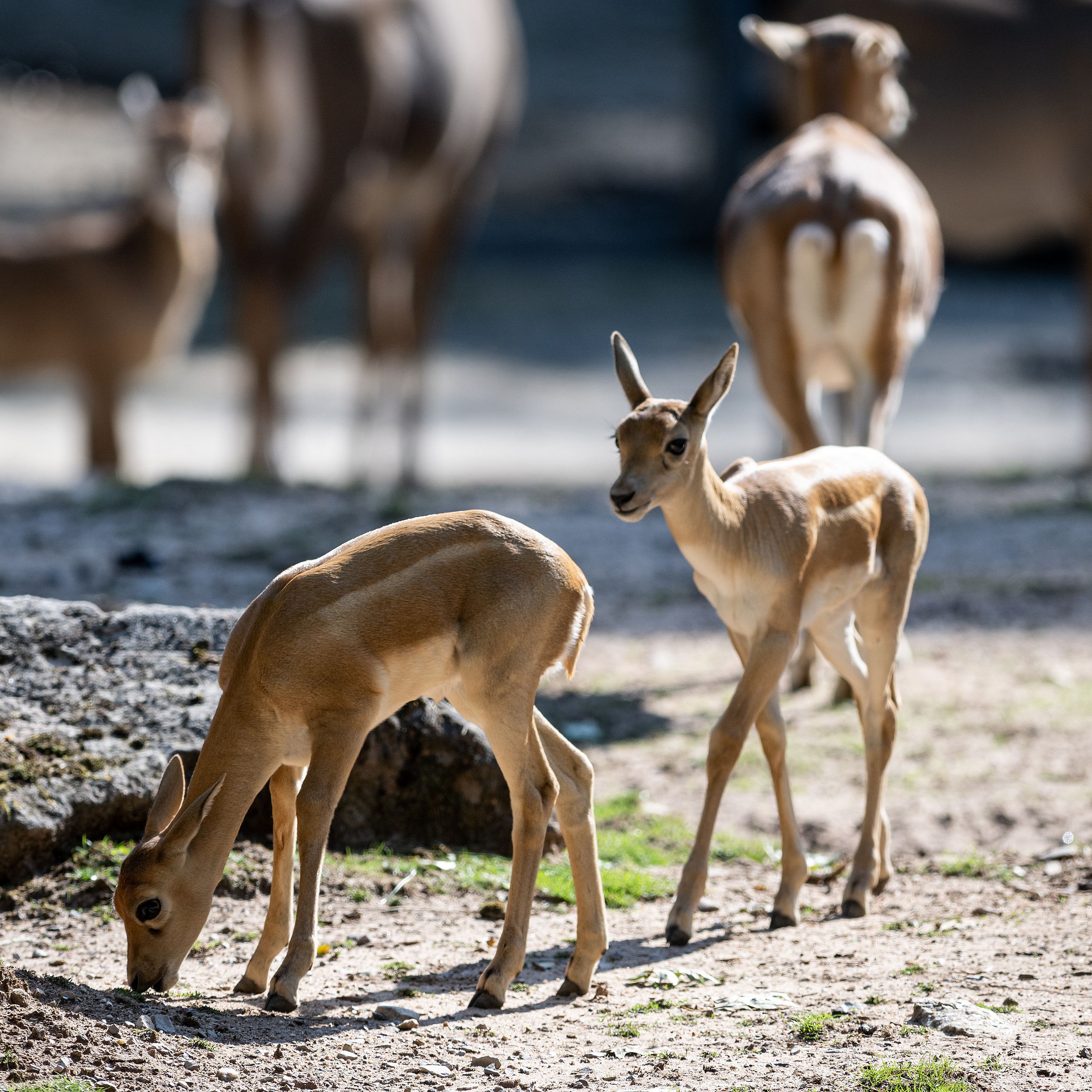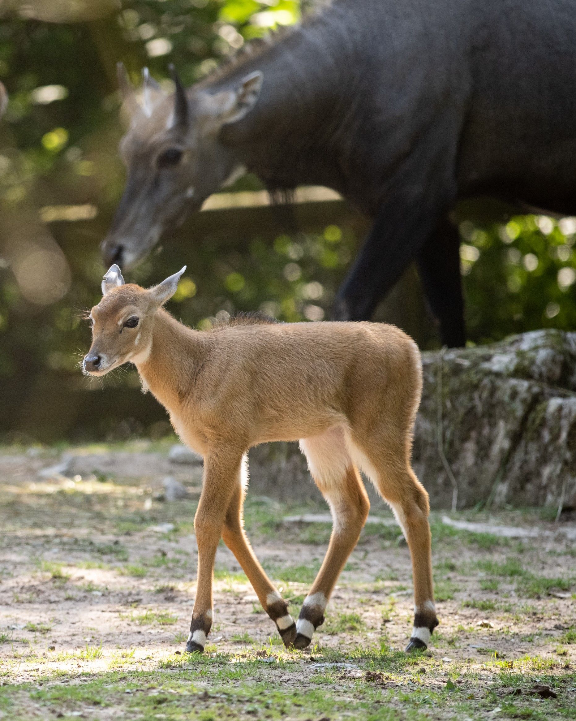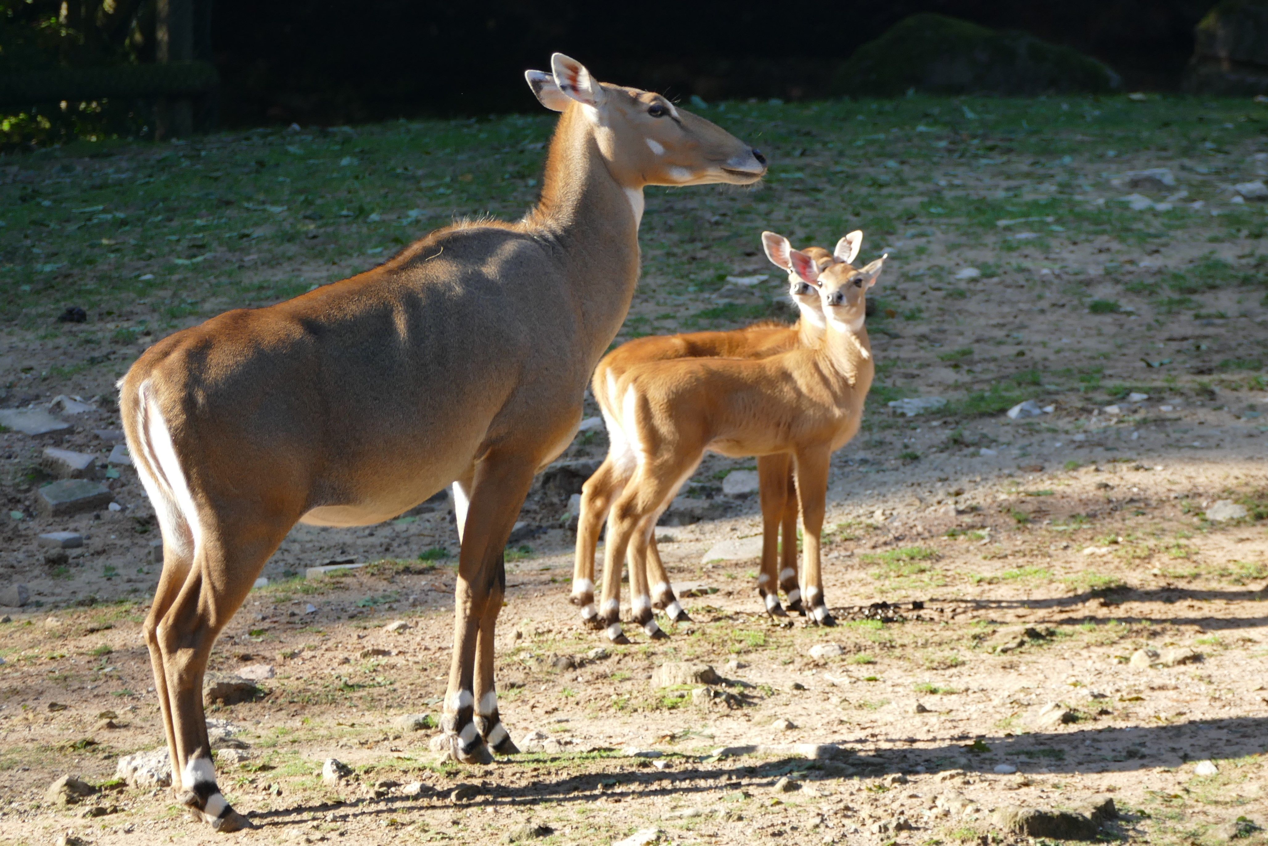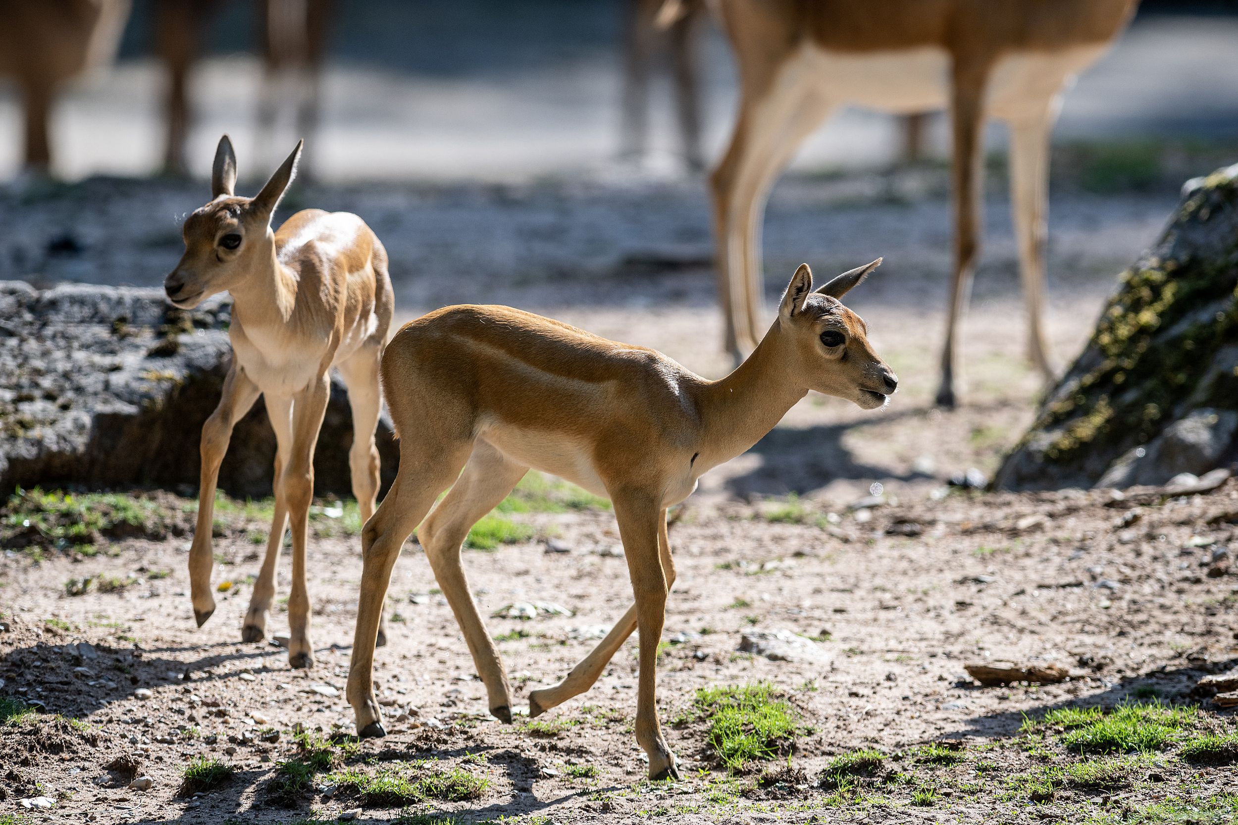 Die beiden Hirschziegenantilopen sind am 9. und am 18. August zur Welt gekommen. Hirschziegenantilopen sind deutlich kleiner als Nilgauantilopen und können über lange Distanzen schnell laufen.