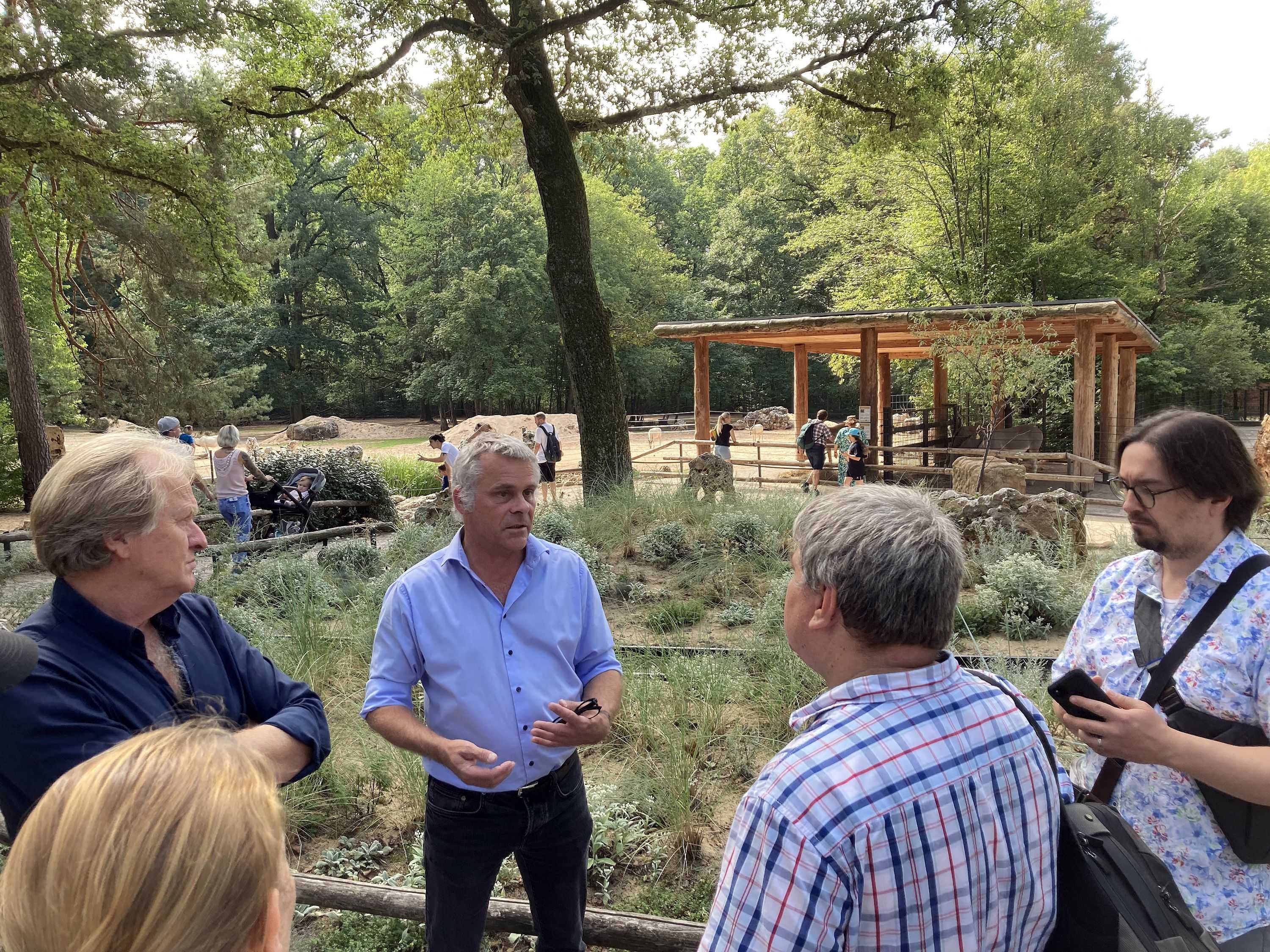 Vor der Anlage der Mendesantilopen und Somali-Wildesel spricht Dr. Dag Encke über das Thema Artenschutz. Beide Arten gelten laut Weltnaturschutzunion (IUCN) als „vom Aussterben bedroht“.