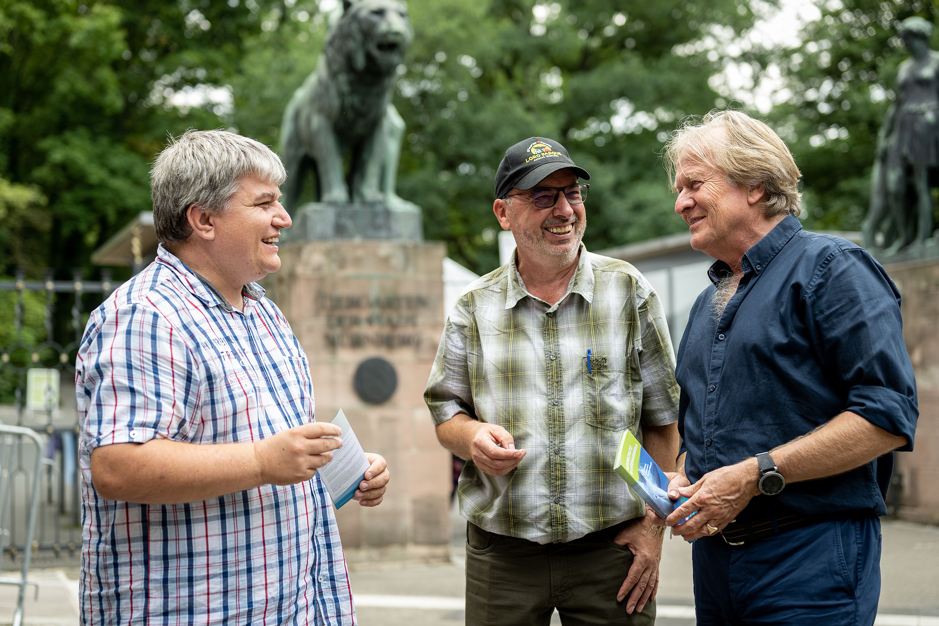 MdB Stefan Schmidt unterhält sich mit Wolfgang Rades und Dr. Lorenzo von Fersen (v.li.)