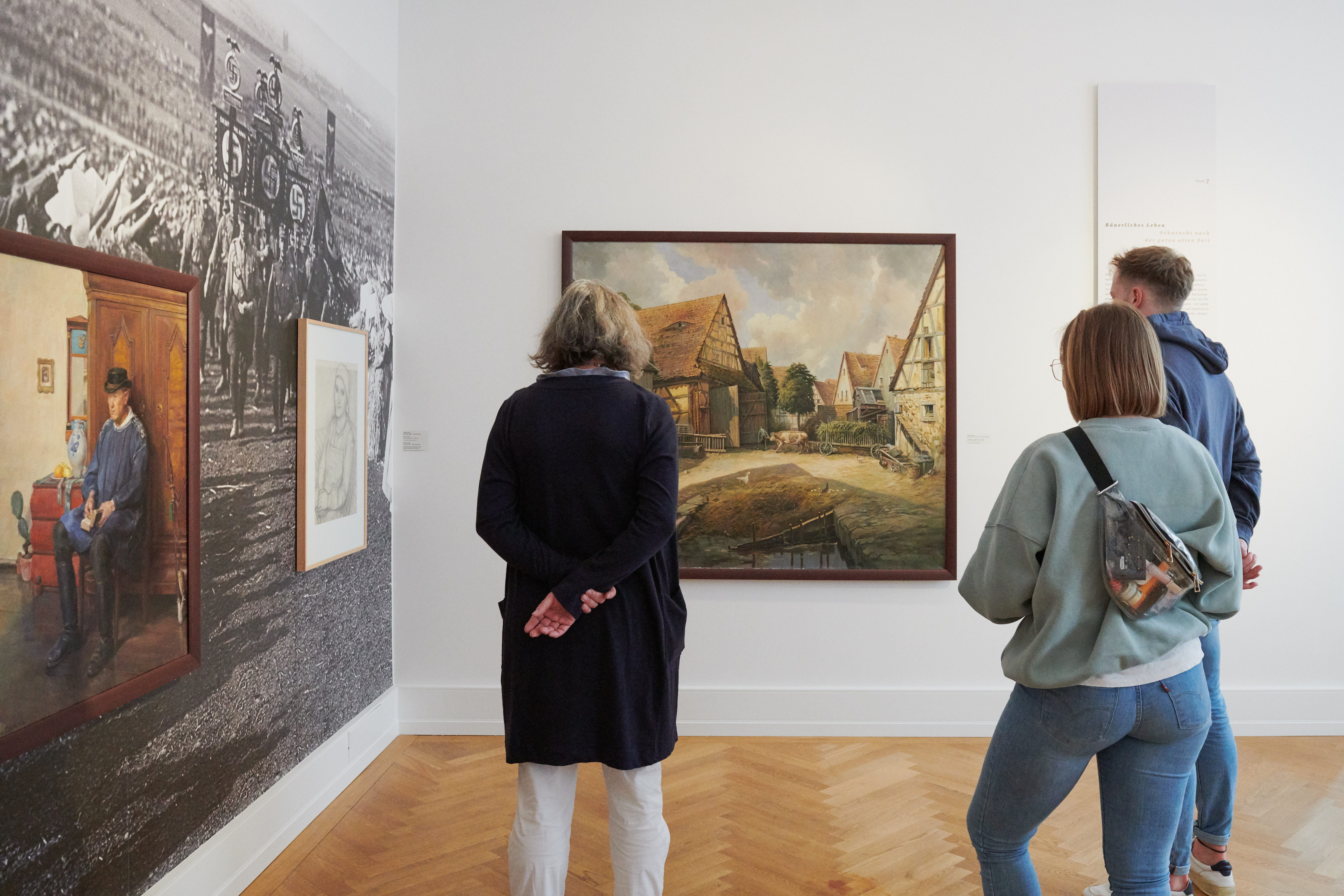 Über 200 Werke von rund 60 Künstlerinnen und Künstlern zeigen die Entwicklung der Nürnberger Kunst von den 1920er-Jahren über die NS-Zeit bis in die Nachkriegszeit. Der Sammlungskurator gibt einen Einblick in den Entstehungsprozess der Ausstellung und das zugrundeliegende Forschungsprojekt. Dieses betraf vornehmlich die städtischen Kunstbestände, die zwischen 1933 und 1945 erworben wurden. Daneben wird das für die Ausstellung erarbeitete Ausstellungsdesign ein Schwerpunkt der Führung sein.