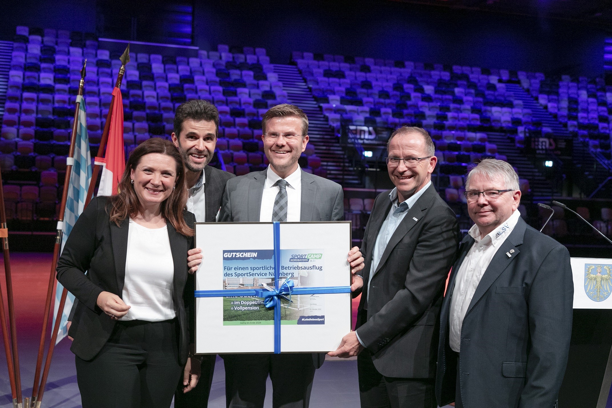 Pandemiebedingt mit einem Jahr Verspätung ist am Mittwoch, 5. Oktober 2022, in der KIA Metropol Arena, Dr.-Ingeborg-Bausenwein-Straße 1, das 100-jährige Jubiläum des Nürnberger Sportamts, mittlerweile SportService, gefeiert worden. Rund 500 geladene Gäste haben Moderator Markus Othmer auf eine Reise durch 101 Jahre Nürnberger Sportgeschichte begleitet – 1921 wurde auf Initiative des Arbeiter-Turn- und Sportbunds und des Nürnberger Stadtverbands das „Stadtamt für Leibesübungen“ ins Leben gerufen. Zudem sind bei der Veranstaltung Athletinnen und Athleten aus Nürnberg für ihre besonderen sportlichen Erfolge in den vergangenen zwei Jahren geehrt worden.