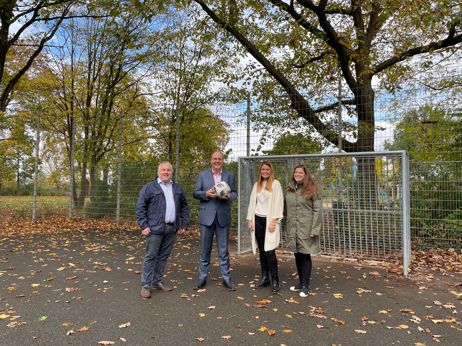 Am Mittwoch, 26. Oktober 2022, haben Christian Vogel, Bürgermeister und Erster Werkleiter des Servicebetriebs Öffentlicher Raum Nürnberg (Sör), und Jörg Brunner, Erster Vorsitzender des Bürgervereins Jobst-Erlenstegen e. V., Anja Schäfer, Zweite Vorsitzende, sowie die stellvertretende Schatzmeisterin des Bürgervereins, Michaela Wright, neue Fußballtore auf dem Bolzplatz in der Rechenberganlage vorgestellt.