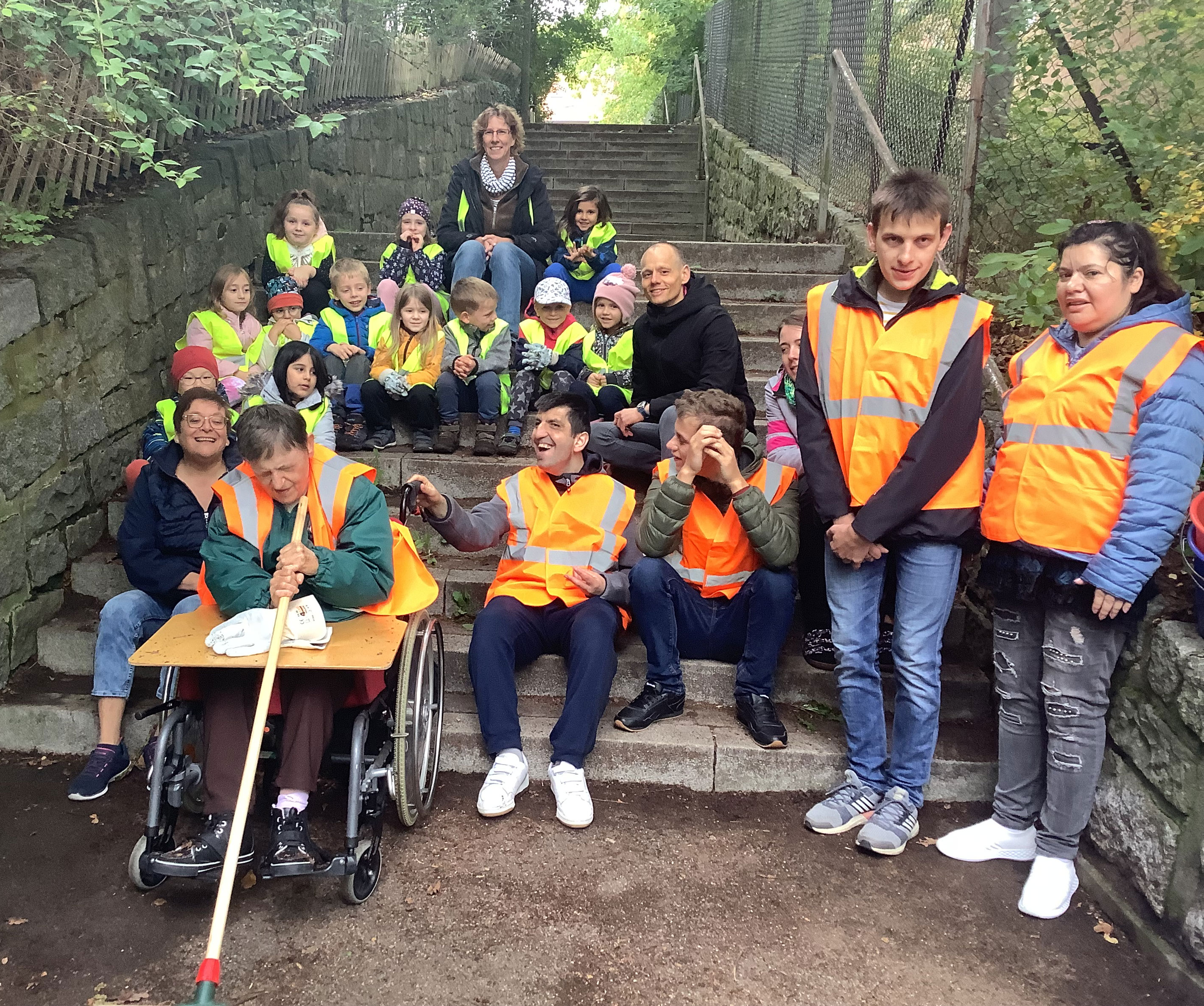 Ein besonderes Inklusionsprojekt ergab sich aus der gemeinsamen „Kehrd wärd“-Aktion des katholischen Kindergartens Heilig Kreuz und der Therapeutischen Tagesstätte Felsenstraße der Lebenshilfe Nürnberg e.V.