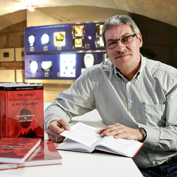Aus all den gesammelten Geschichten veröffentlichte Bert Rauenbusch 2019 schließlich das 304 Seiten dicke Buch „100 Jahre Kriminalgeschichte in Mittelfranken – 80 wahre Fälle“ aus welchem er am 12. Dezember lesen wird. Im Anschluss beantwortet der Autor Fragen und signiert auf Wunsch sein Buch.