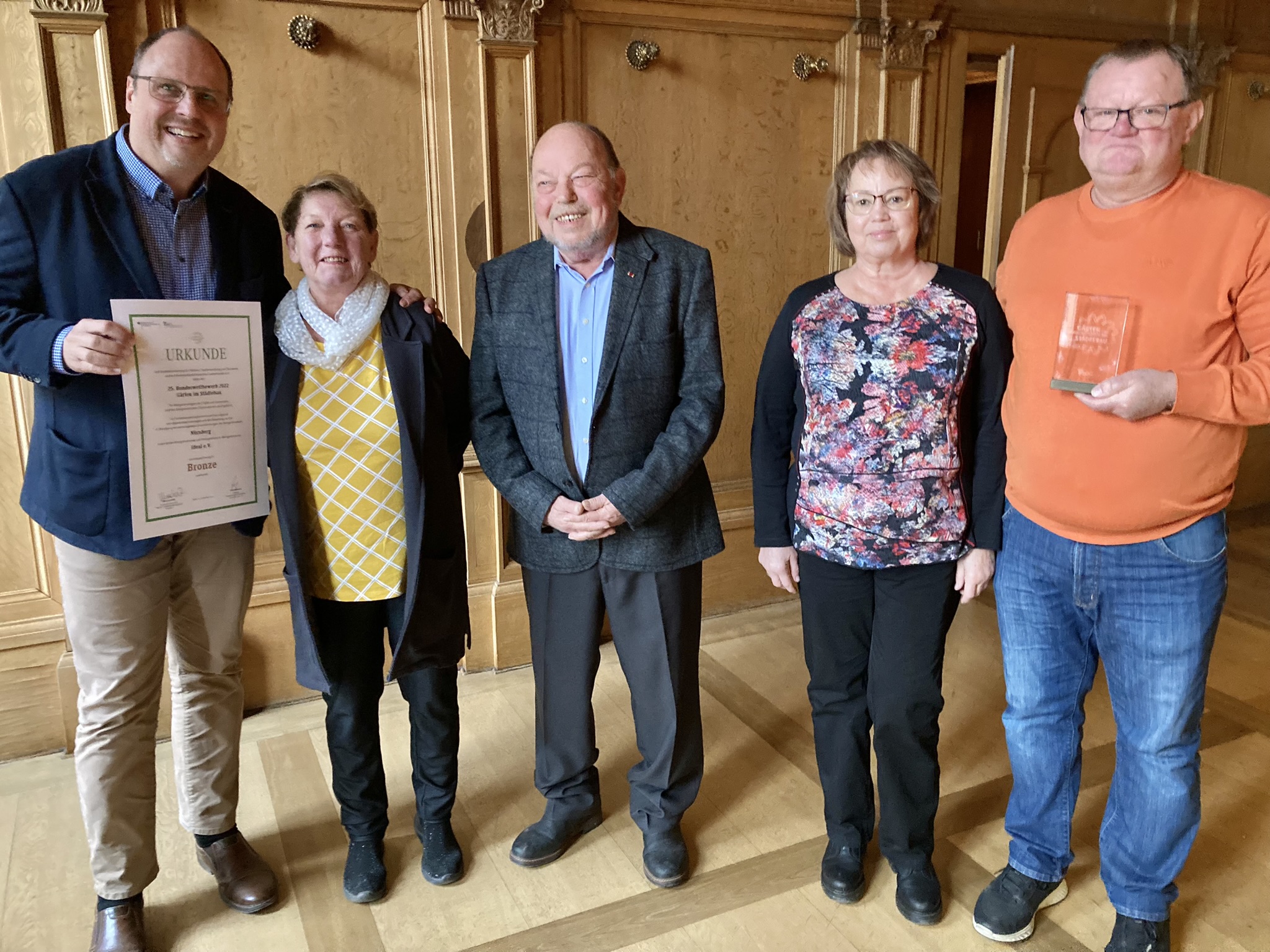 Von links nach rechts: Bürgermeister Christian Vogel, Ingrid Dengler und ihr Mann, der 1. Vorsitzende der KGA Ideal e.V., Lothar Dengler, die 2. Vorsitzende der KGA Ideal, Christa Mayr, sowie der ehemalige 2. Vorsitzende des Stadtverbands der Kleingärtner, Franz Bauer.