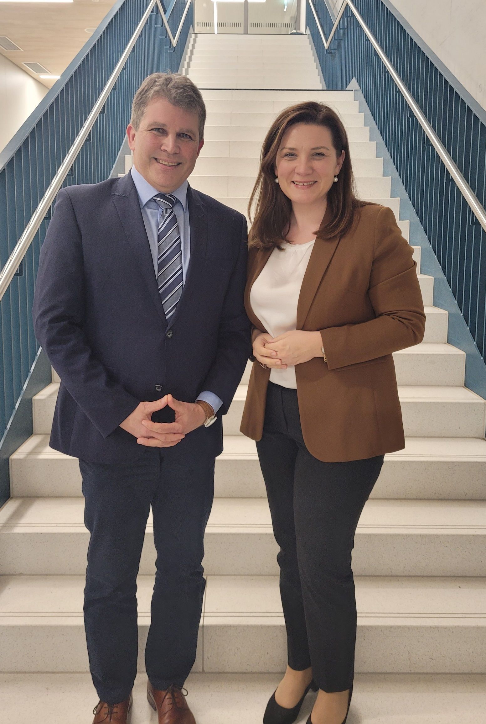 v. l.: Dr. Thomas Krapf, neuer Schulleiter der Bertolt-Brecht-Schule, und Cornelia Trinkl, Referentin für Schule & Sport