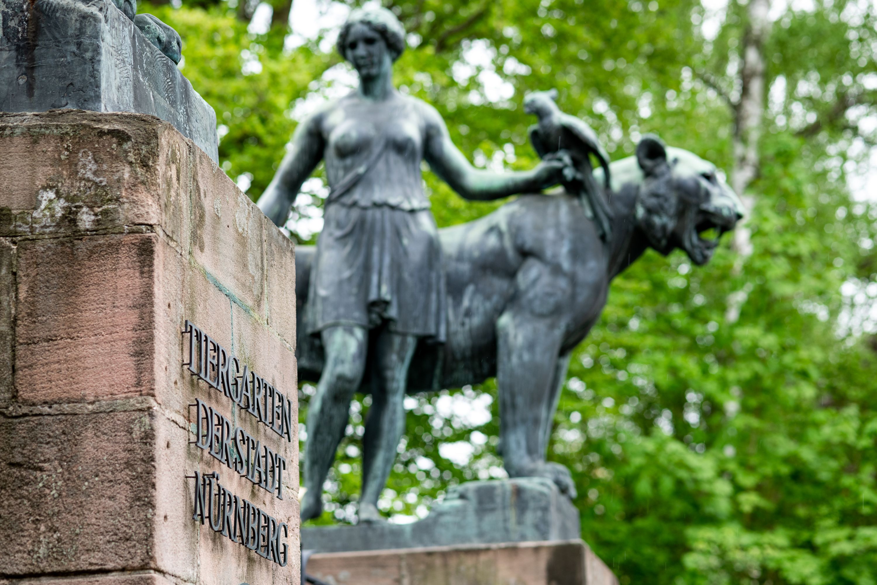 Bild Download: Die Portalfiguren des alten Tiergartens sind an den Schmausenbuck mit umgezogen und begrüßen noch heute die Besucherinnen und Besucherinnen am Eingang.