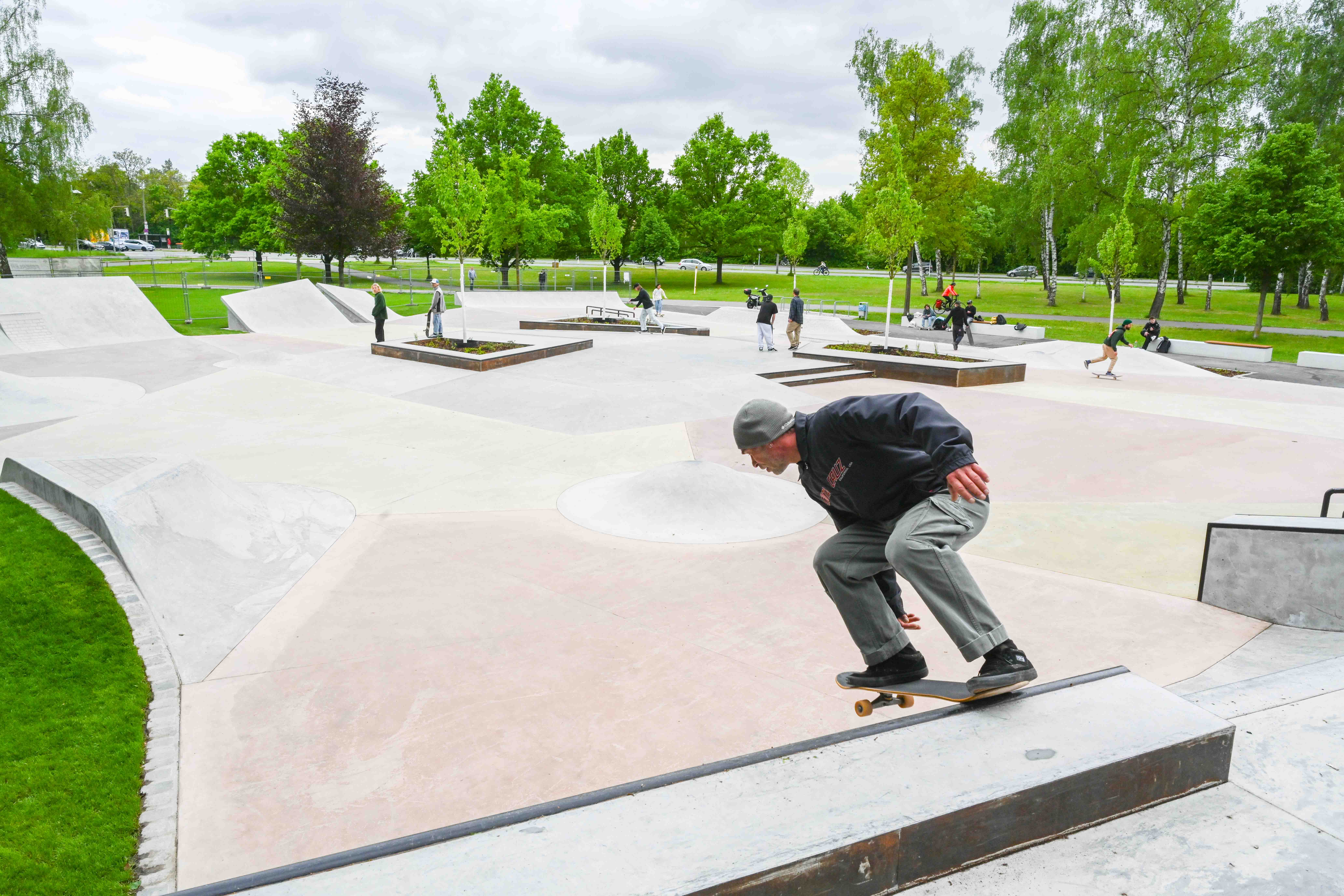 Die Stadt Nürnberg hat die Skateanlage an der Münchener Straße im Volkspark Dutzendteich erneuert. Die bestehende, in die Jahre gekommene Anlage wurde vom Servicebetrieb Öffentlicher Raum Nürnberg (Sör) durch einen neuen und zeitgemäßen Skatepark ersetzt, der sich in die urbane Parklandschaft des Volksparks einfügt. Oberbürgermeister Marcus König und Christian Vogel, Bürgermeister und Erster Sör-Werkleiter, haben am Mittwoch, 17. Mai 2023, gemeinsam mit Cornelia Trinkl, Referentin für Schule und Sport, sowie Elisabeth Ries, Referentin für Jugend, Familie und Soziales, die neue Skateanlage eröffnet.