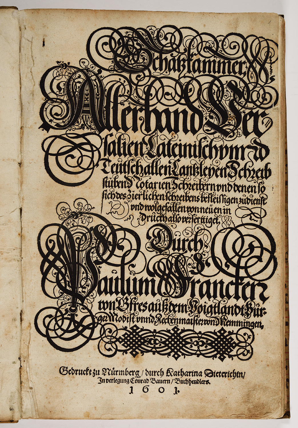 Bild Download: Titelblatt eines Musterbuchs für Zierbuchstaben, gedruckt von Katharina Dietrich in Nürnberg, verlegt von Conrad Bauer, 1601.