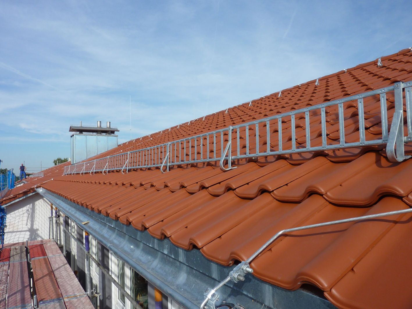 Planung und Bauleitung hat das städtische Hochbauamt in Eigenregie durchgeführt. Zur Vorbereitung der Arbeiten musste die bestehende Photovoltaikanlage auf der Südseite des Dachs entfernt werden. Anschließend konnte das Freidecken beginnen. „Die oberste Dachhaut wurde komplett erneuert und nach aktuellem Stand der Technik mit einer Unterspannbahn sowie einer neuen Ziegeldeckung versehen. Insgesamt wurde eine Fläche von nahezu 700 Quadratmetern neu gedeckt. Im Zuge der Sanierung wurden auch sämtliche Dacheinfassungen und Anschlüsse erneuert und vorhandene Hohlräume mit Taubenschutz ausgestattet“, erklärt Planungs- und Baureferent Daniel F. Ulrich.
