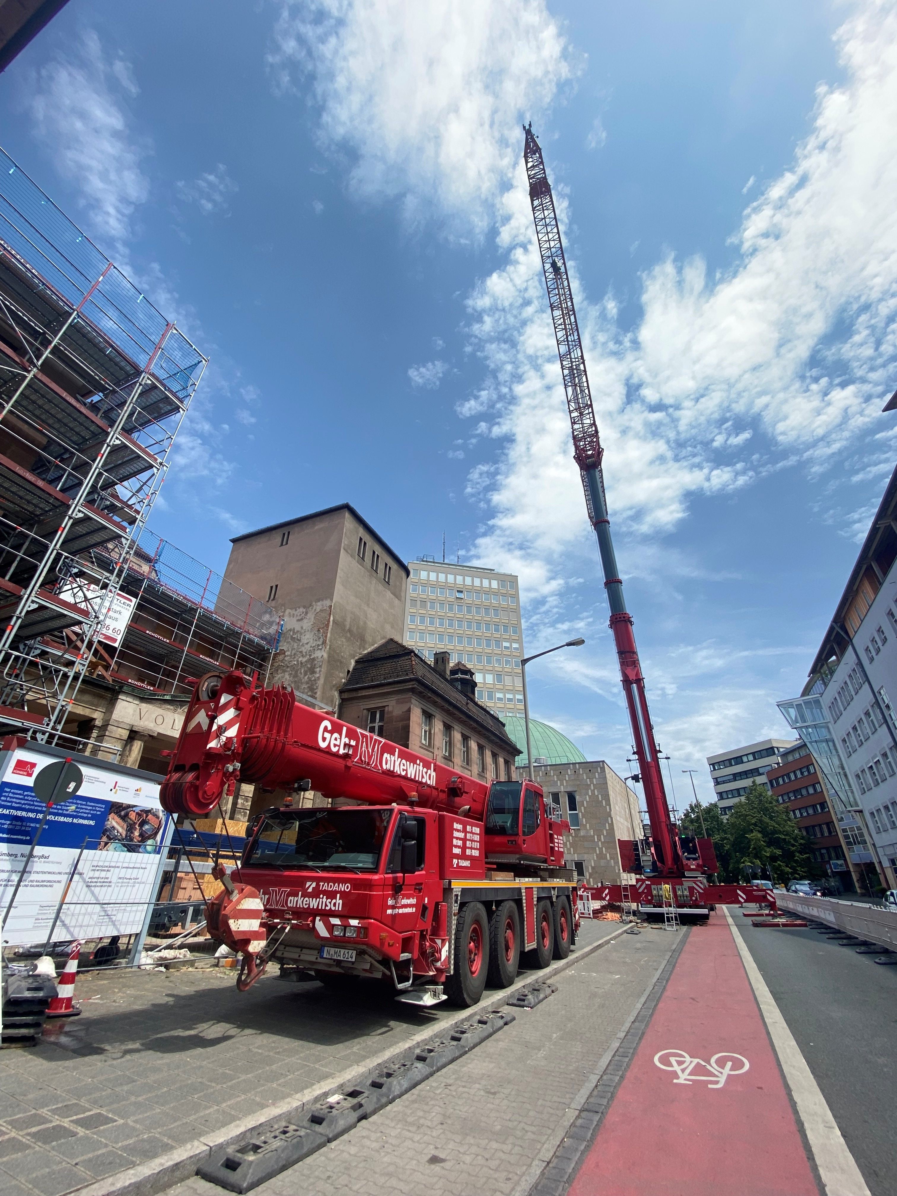 „Die Sanierung des Volksbads geht in großen Schritten voran. Leider lässt sich bei einem solchen Riesenprojekt nicht alles geräuschlos und ohne Einschränkungen umsetzen. Wir arbeiten mit voller Kraft, damit der Großkran schnellstmöglich wieder von der Straße kommt“, sagt Dr. Christian Pröbiuß, Sprecher der Projektgruppe Volksbad der Stadt Nürnberg.