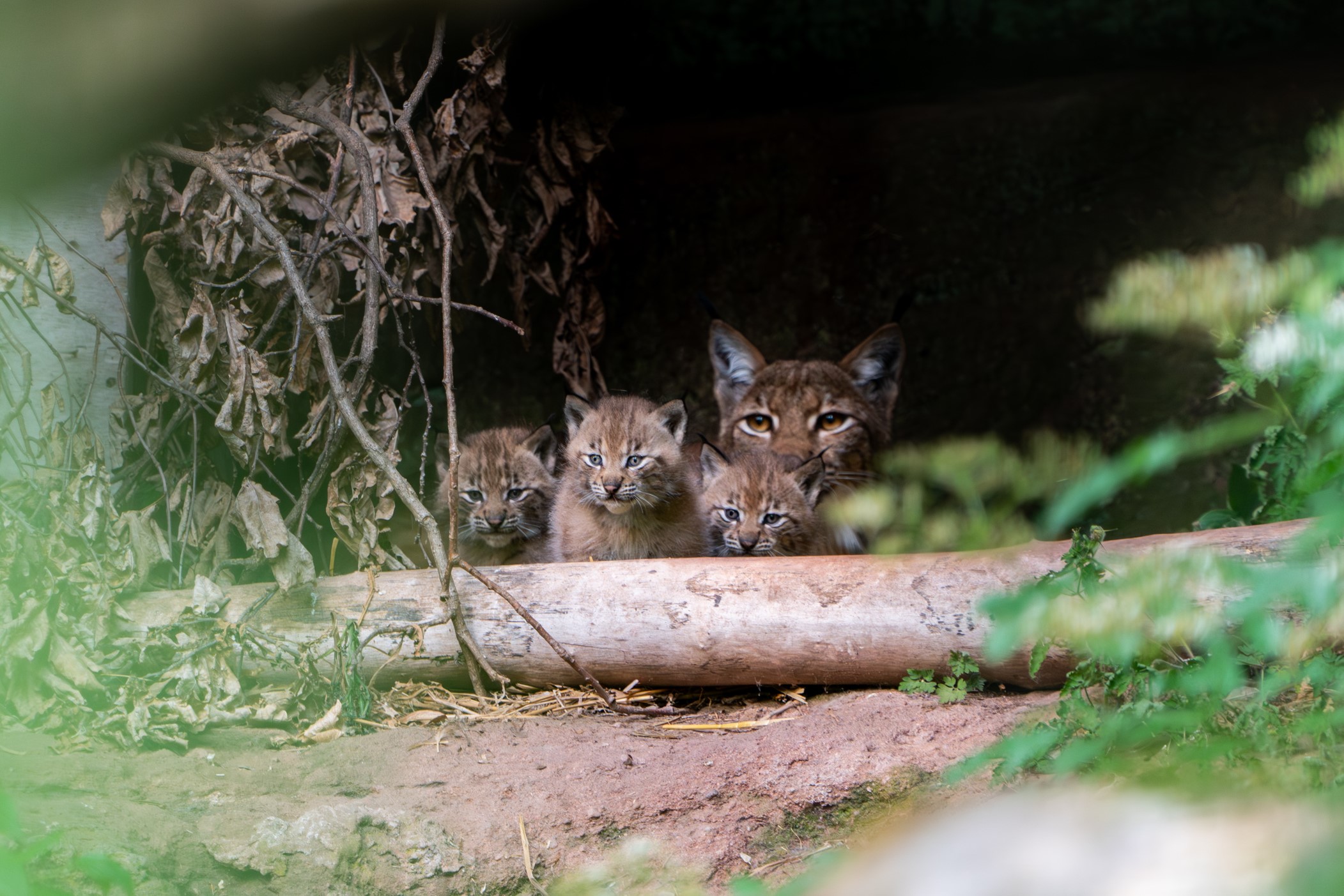 Mindestens drei Jungtiere hat Luchsweibchen Desari vor wenigen Wochen zur Welt gebracht. Wie viele es genau sind und welches Geschlecht sie haben, ist noch nicht klar, da die Tiere nicht bei der Aufzucht gestört werden sollten.