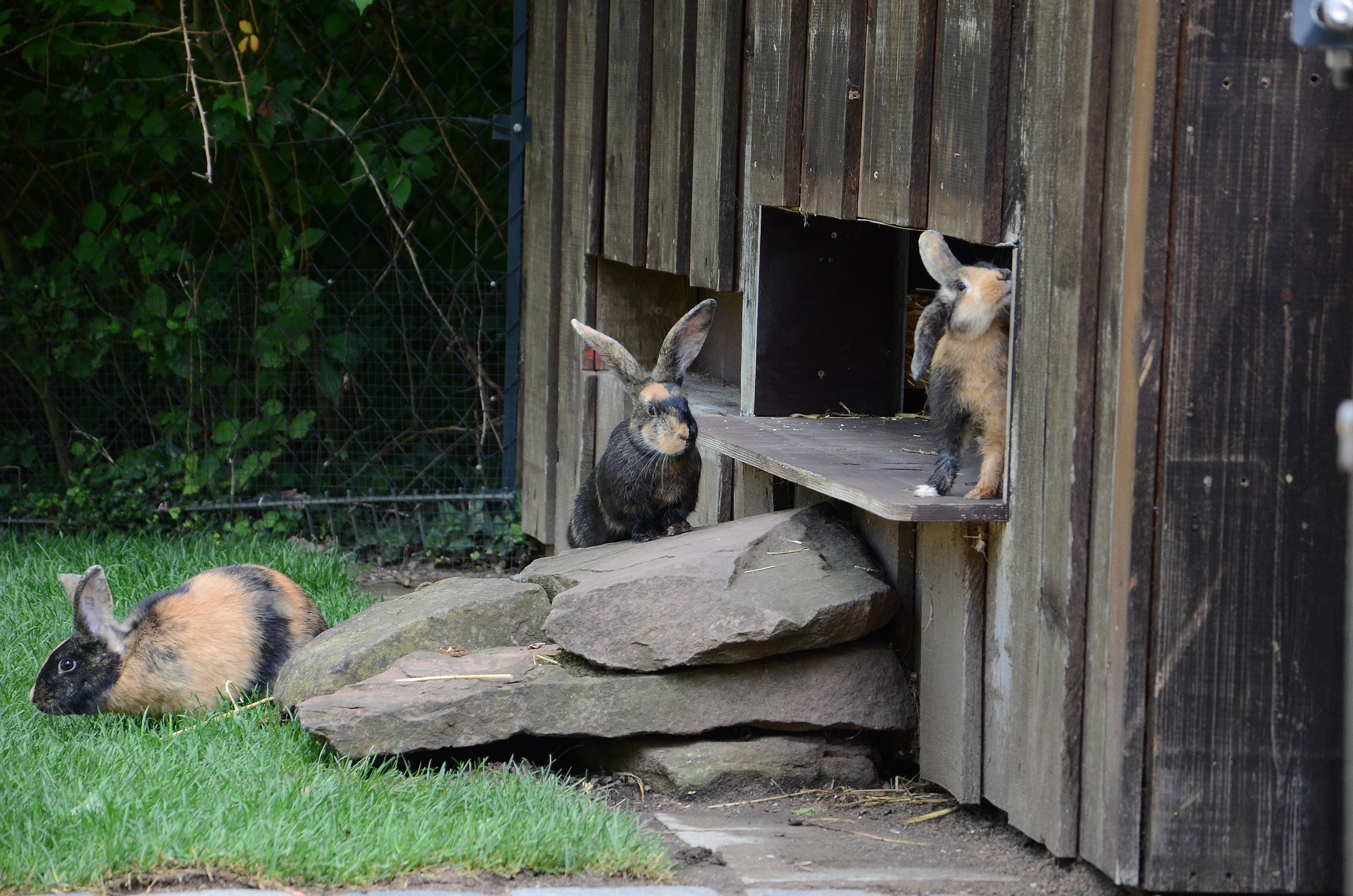 Die Japaner-Kaninchen sind in das Gehege eingezogen, in dem bislang die Riesenkaninchen zu sehen waren. Das Gehege wurde in der Zwischenzeit vom Team der Landschaftsgestaltung des Tiergartens und den zuständigen Tierpflegerinnen und Tierpflegern umgestaltet und verschönert. Sie haben das Außengehege neu bepflanzt, Baumstämme eingebracht sowie eine Sandfläche und kleine Steinhöhlen angelegt, die den Kaninchen besseren Unterschlupf bieten. Auch die Inneneinrichtung wurde erneuert und mit mehr Versteckmöglichkeiten ausgestattet.