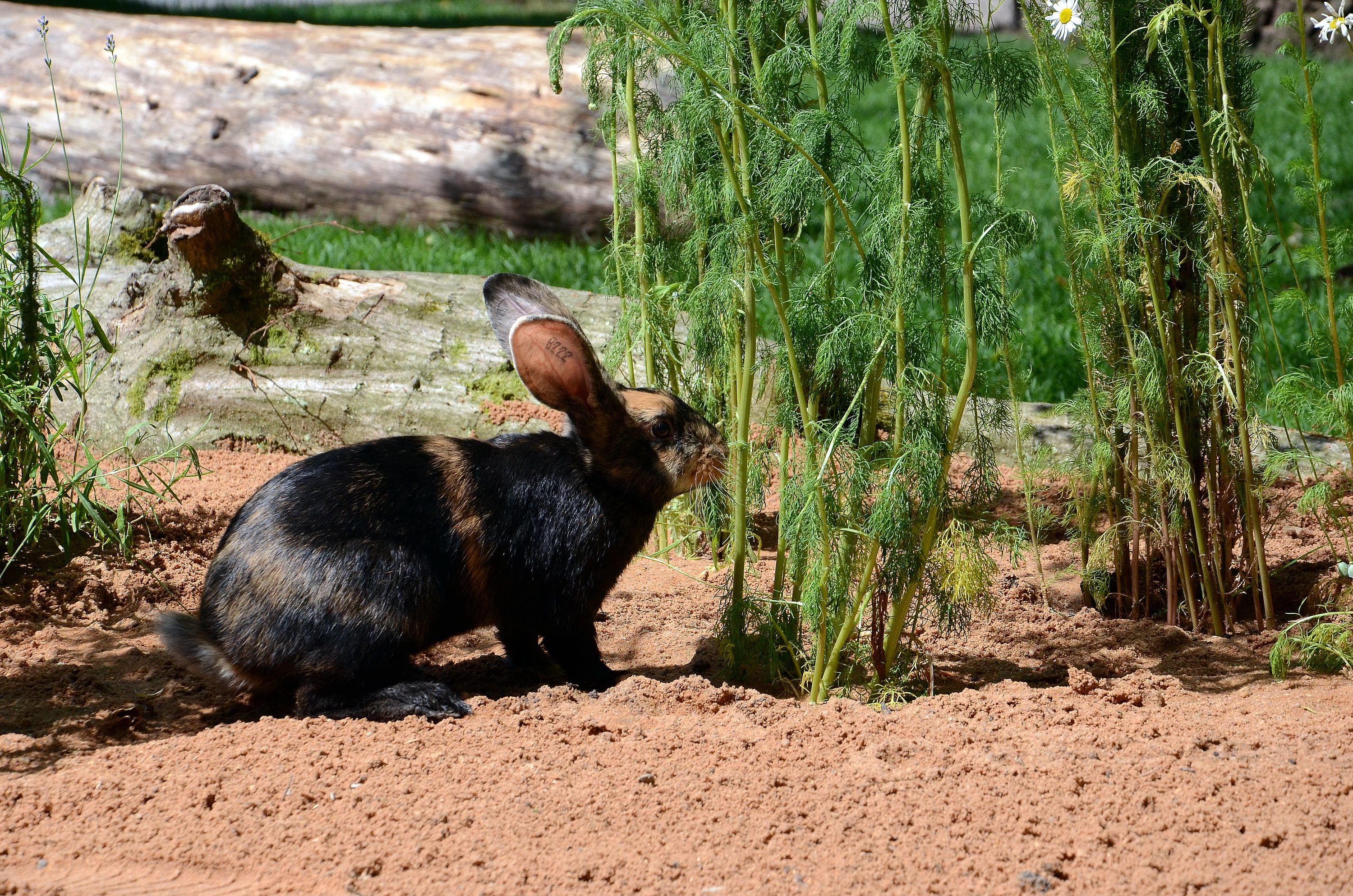 Die Kaninchen haben das umgestaltete und neu bepflanzte Gehege mit Baumstämmen, Steinhöhen und einer Sandfläche von Beginn an gut angenommen.