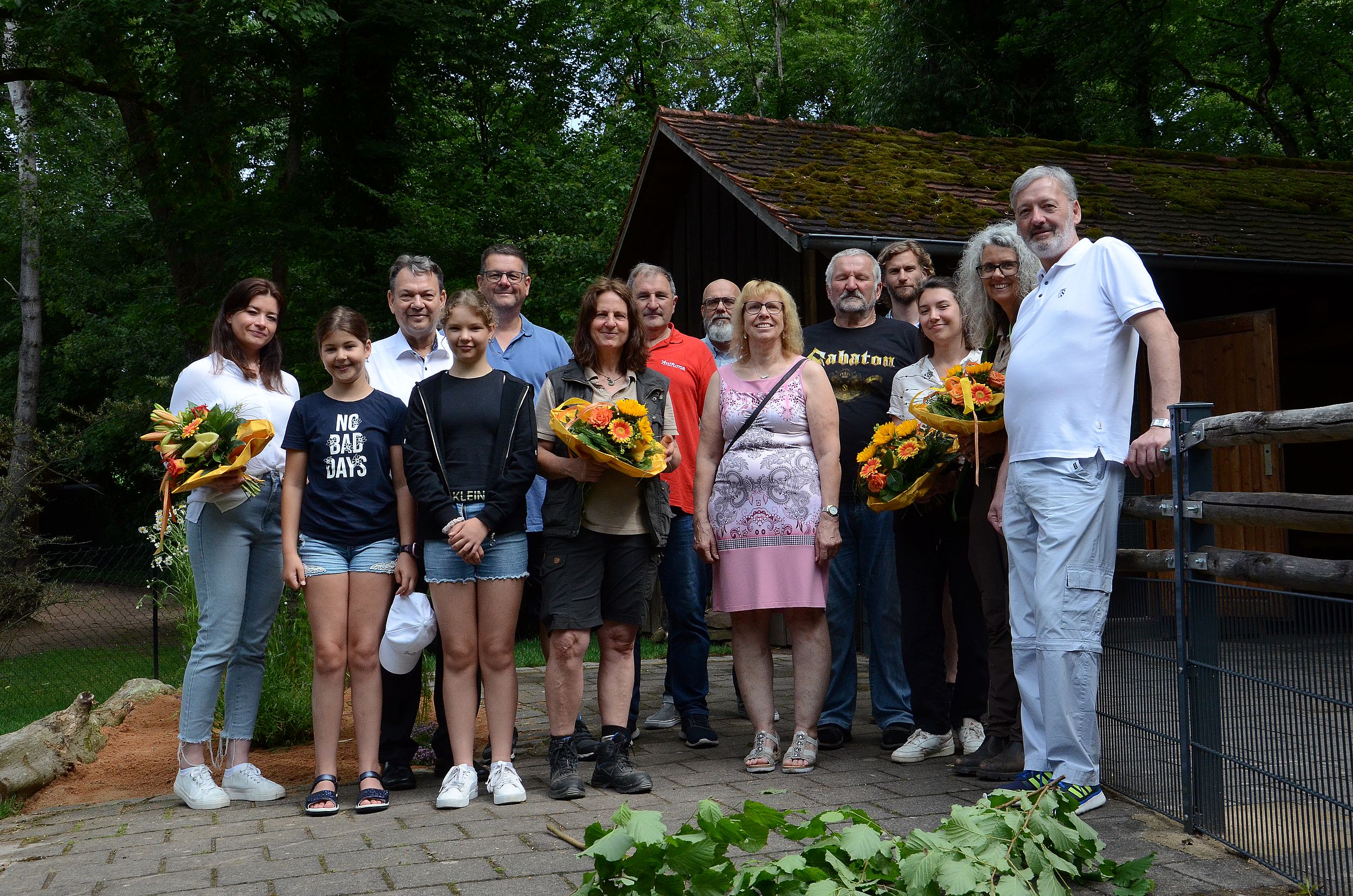 Zum Einzug der Japaner-Kaninchen waren Vertreterinnen und Vertreter des ZDRK, des Tiergartens und weitere Projektpartner vor Ort.