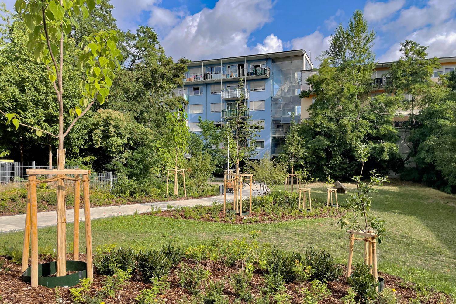 Bei der rund 1 000 Quadratmeter große Grünanlage wurden sowohl gestalterische Aspekte als auch Aspekte der Nachhaltigkeit und Biodiversität berücksichtigt.