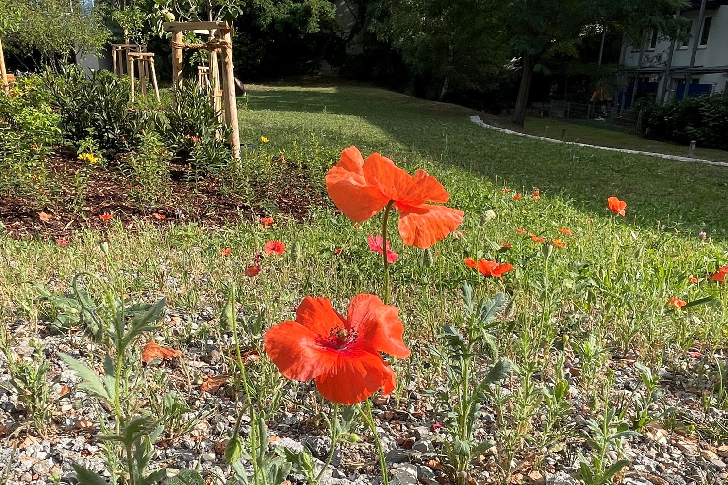 Bild Download: Zentral angelegt wurde eine Blühwiese für Bienen und Insekten, im Herbst folgt noch die Pflanzung von über 3 000 Zwiebelblumen