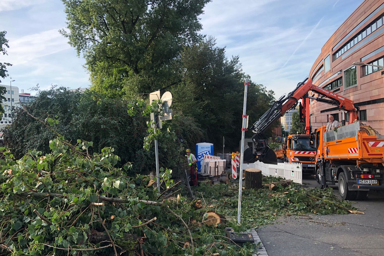 Bild Download: Sör-Mitarbeiter entfernen die Überreste einer alten Pappel am Rathenauplatz.