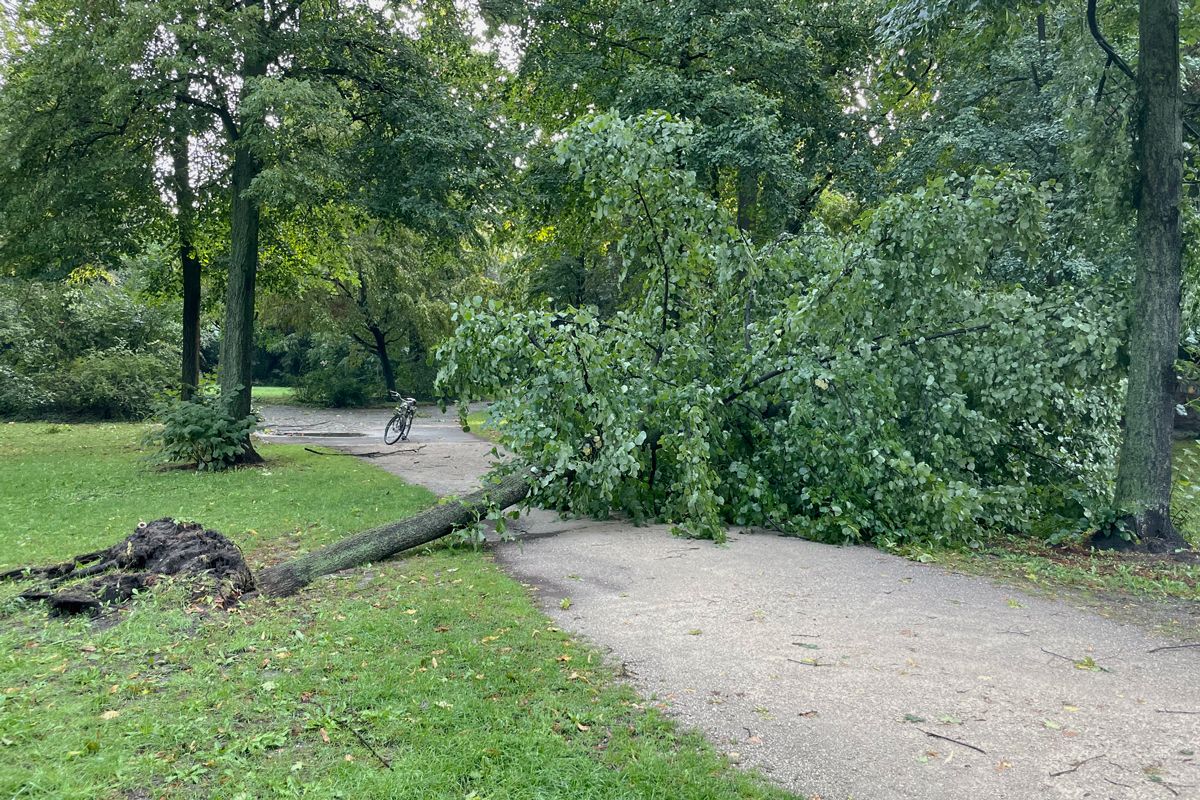 Bild Download: Im Rosenaupark hat der Sturm eine Linde entwurzelt. Sör ist bereits seit dem frühen Morgen mit den Aufräumarbeiten beschäftigt.