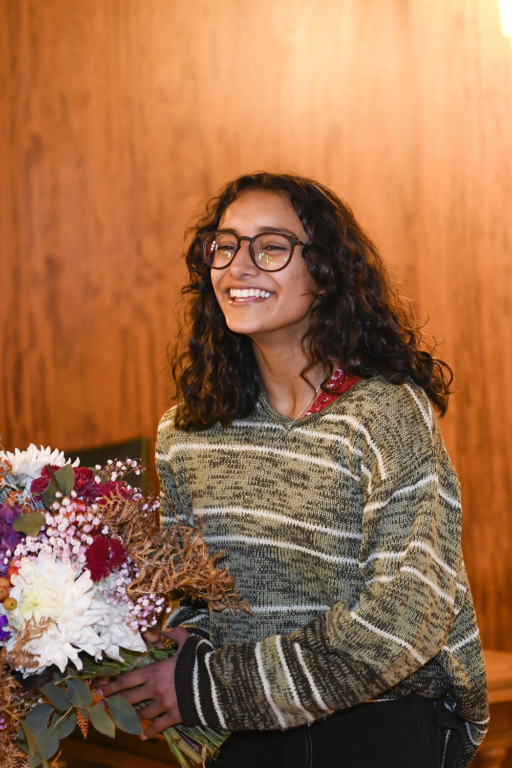 Benigna Munsi wurde 2002 in Nürnberg geboren. Ihre Hobbys sind Theaterspielen, Musizieren, Sport und Reisen. Sie besucht das Labenwolf-Gymnasium. Als Austauschschülerin verbrachte sie das Schuljahr 2017/18 in Sao Paulo in Brasilien. Seit 2007 singt sie im Kinder- und Jugendchor in der Kirchengemeinde St. Bonifaz. In der Gemeinde engagiert sie sich zudem seit zwölf Jahren als Ministrantin. Seit 2015 spielt sie Oboe, in den Jahren zuvor spielte sie die Instrumente Bratsche und Geige. Nach zwölf Jahren Ballettunterricht und zwei Jahren Turnen entdeckte sie 2018 eine neue Sportart für sich: Fußball. Außerdem klettert und wandert sie gerne. Ihre große Leidenschaft gehört dem Theater: Nach ersten Erfahrungen als Statistin am Opernhaus ist sie im Jugendclub des Staatstheaters aktiv und hat in dieser Eigenschaft bereits einige Rollen übernehmen dürfen. Ihr Berufswunsch steht fest: „Nachdem ich 2020 meine Schulzeit abschließen werde, möchte ich gerne Schauspiel studieren“, schreibt Benigna Munsi in ihrer Bewerbung.